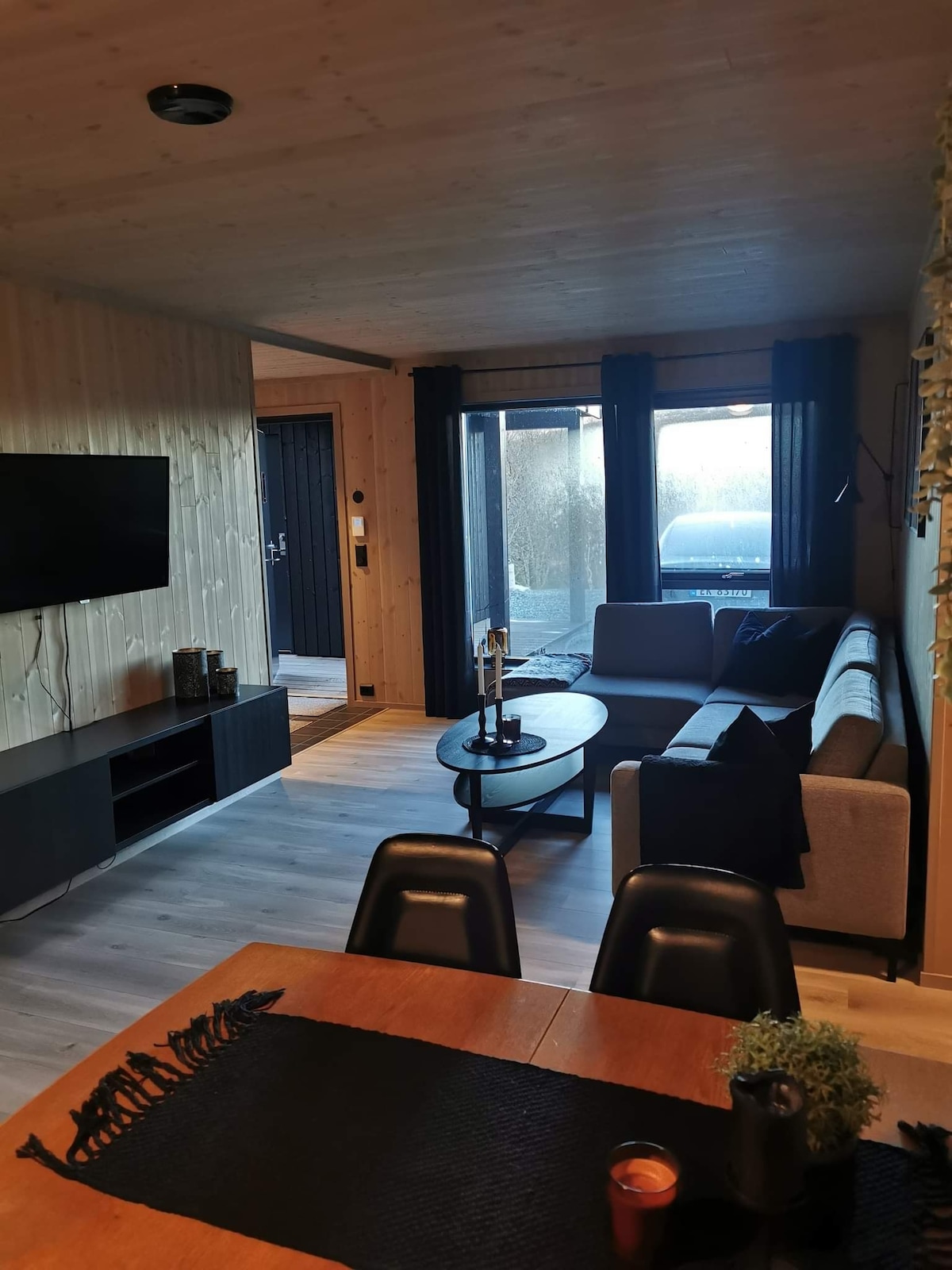 Ven a las camas listas. Casa grande de 96 m2 con gran terraza, barbacoa y hermosas vistas. 2 dormitorios. Increíbles condiciones de sol. Situado en la granja en funcionamiento con producción lechera. Estacionamiento privado justo afuera de la puerta. Rampa para sillas de ruedas, todo en una sola planta. Oportunidades para ver tanto las auroras boreales como los alces y los ciervos desde la terraza. Apto para niños. Proximidad inmediata al bosque, oportunidades de senderismo y pistas de esquí. Pesca de salmón y caza de caza pequeña en las inmediaciones. Se puede traer un teleférico de carga privado. El cargo se paga de acuerdo con el consumo.