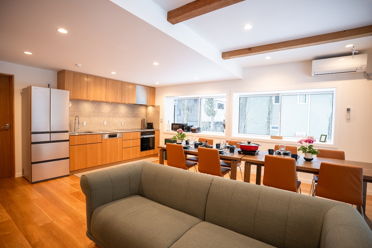 Villa de★ lujo en las montañas de Karuizawa ★ Villa exclusiva a 1000 m de altura en una propiedad de 1070 m². 3 dormitorios y estudio para un máximo de 13 huéspedes. Paraíso para● mascotas Corralito para perros vallado de 500 ㎡, inodoro interior para mascotas, comodidades incluidas. ● Comodidad prémium Alto aislamiento, calefacción por suelo radiante, aire acondicionado, camas dobles Serta. Cocina, WiFi, Netflix, barbacoa, cargador para vehículos eléctricos, 3 estacionamientos. ● Ubicación privilegiada A 15 minutos de Old Karuizawa, a 10 minutos de Hoshino, a 12 minutos de la estación. Disfruta de cenas bajo las estrellas, mañanas con niebla y reuniones con hogueras con familiares, amigos y mascotas.