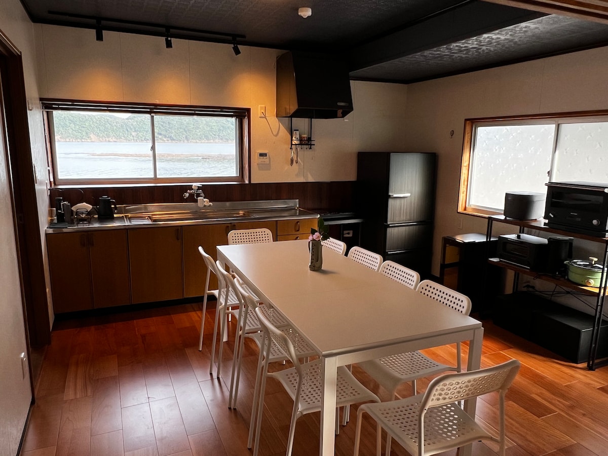 Tomitsu es un pequeño pueblo pesquero a los pies del monte Unzen, frente a Kohama Onsen en la costa opuesta. Mare es un alojamiento de alquiler privado. 22 000 yenes para 1-4 personas por edificio y +5,500 yenes por persona para 5 o más personas, ¡para que puedas quedarte con tu familia y amigos a un precio razonable! Puedes disfrutar de toda la península de Shimabara con fácil acceso en una excursión de un día, a 5 minutos de Obama Onsen, a 30 minutos de Unzen Onsen y a 1 hora de Shimabara Onsen. También es una buena base para el movimiento activo. También es agradable tener un momento tranquilo y relajante. En las estrechas calles de Futtsu, Benten, Sarutahiko Inari Shrine, túneles verdes, el sonido de los barcos, el sonido de los pájaros y las tranquilas olas de Kinkouwan, escucha el funcionamiento de la vida. Aquí es donde puedes encontrar un momento de lujo.