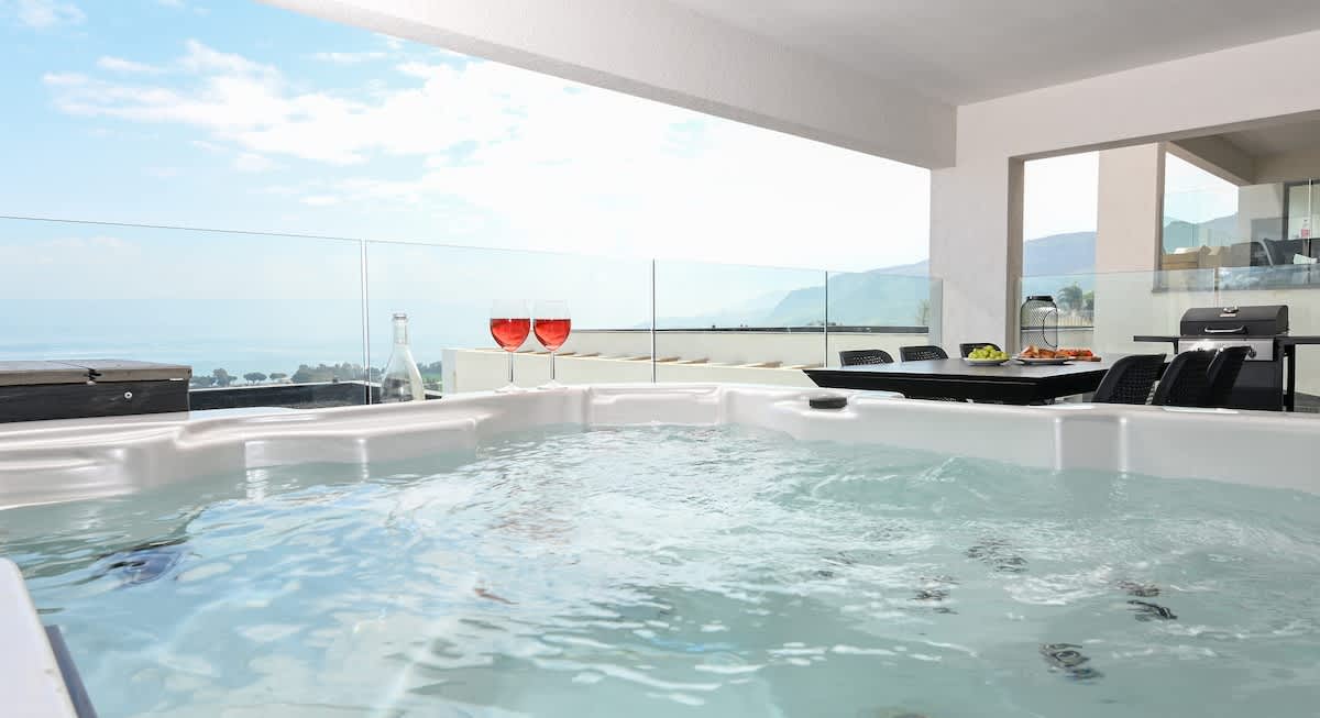 Jacuzzi y puesta de sol junto al mar