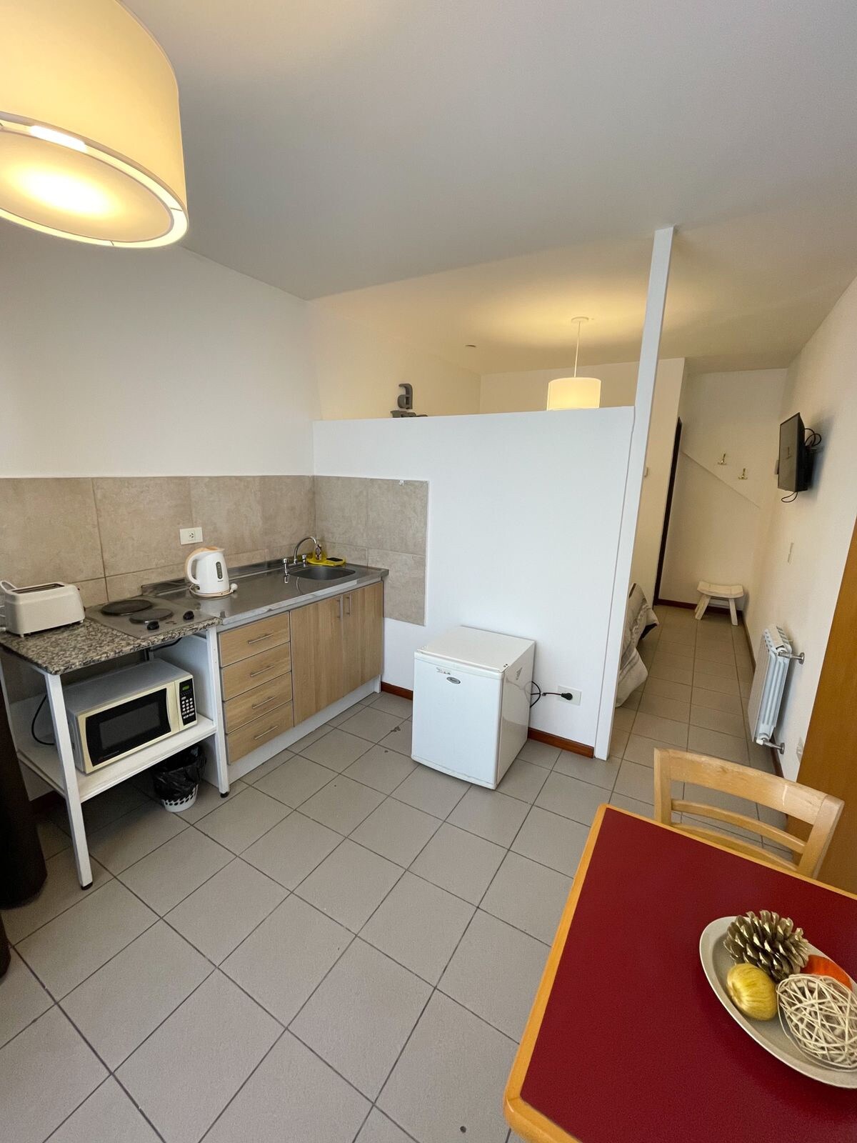 Disfrutá de gran tranquilidad a sólo 200 metros del centro comercial y la zona de restaurantes. Brindamos un monoambiente luminoso con agradable vista. De cuidado diseño estético, está equipado con lo que necesitás para una cómoda estadía. Nos esmeramos para recibirte con nuestra mejor predisposición. La cercanía a los servicios turísticos y transporte público facilitan la organización de las actividades en tus vacaciones.