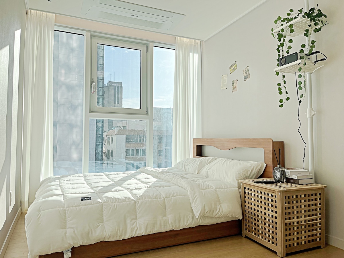 Suya llena de sanación🏡 ¡Ven a una acogedora Suya donde puedes sanar cómodamente a la luz del sol! * ¡La playa de Gwangalli está a 30 segundos a pie! * Es un departamento nuevo durante 24 años, ¡así que puedes usarlo de forma ordenada y limpia! * ¡Equipado con 2 habitaciones, 2 habitaciones de estilo japonés e incluso una bañera! * ¡Transporte público disponible en 1 ~ 8 minutos a pie! Con 👨👨👧👧 capacidad Básico para 2 personas, 2 camas tamaño queen Se pueden alojar hasta 6 personas (edredón simple para 5 o más personas). (Reserva el número exacto de personas) 🛋️ Sala Mesa de comedor para 6 personas, candelabro, TV 🫕 Área de cocina Vajilla, vasos de vino y soju, nevera, lavadora, cafetera, estufa de inducción, microondas 🛌 Habitación. Cama tamaño queen, proyector de haz (Ott), mesa de té, inodoro, bañera 🛁 Baño Cepillo de dientes, pasta de dientes, toalla de ducha, artículos de ducha, toalla Estacionamiento de pago en🚙 la torre de estacionamiento * Los SUV grandes y los vehículos eléctricos utilizan estacionamientos públicos.