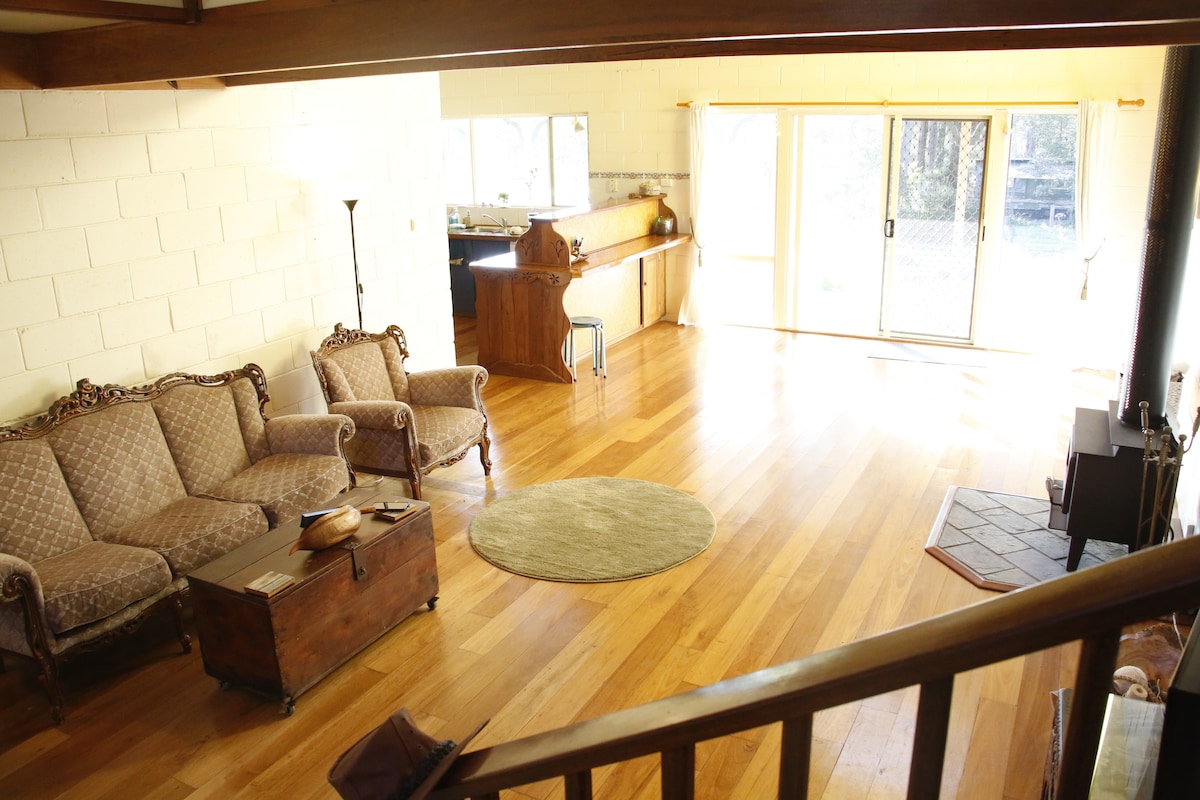 ¡Cargador para vehículos eléctricos disponible! Nuestra casa, situada en un terreno de 30 acres y sin conexión a la red eléctrica, es un refugio encantador, ideal para una familia pequeña o para que las parejas disfruten de una inmersión íntima en la naturaleza. Explora los paseos por el monte con más de 170 variedades de aves avistadas y pozos de natación claros con ornitorrincos. Interactúa con animales de granja y disfruta de visitas guiadas a la granja. Sofá cama tamaño queen para huéspedes adicionales. A tu llegada, te regalamos verduras cultivadas en nuestra propia huerta para que te las lleves a casa. Te invitamos a disfrutar de nuestra granja familiar certificada de mercado de trabajo orgánico