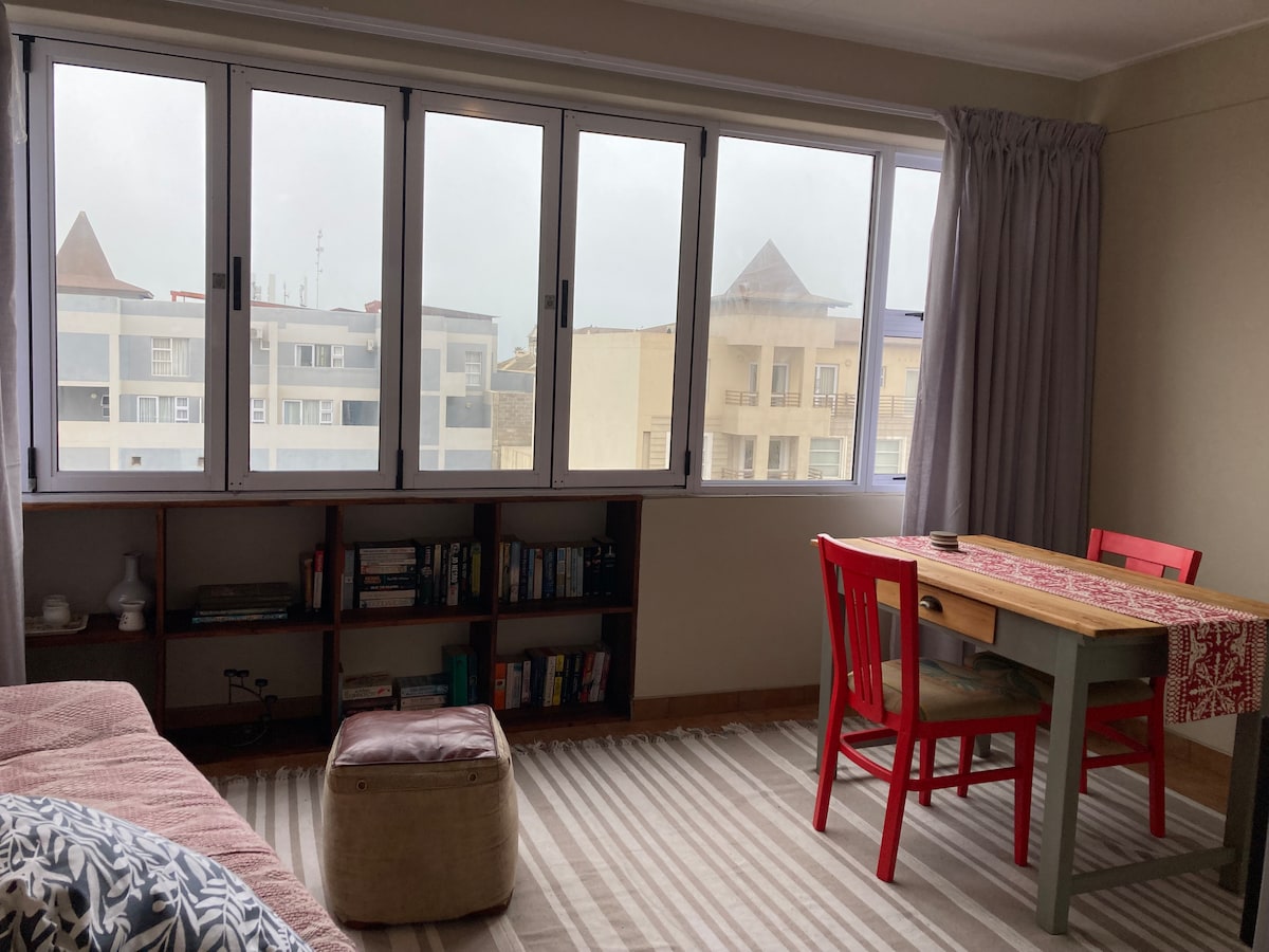 Este apartamento está situado en un barrio seguro y tranquilo del este de Windhoek. Está totalmente equipado para tus necesidades de cocina independiente con una espaciosa cocina, salón con escritorio y chimenea para esas frías noches de invierno y una gran terraza con una hermosa vista a las montañas de Eros. El dormitorio tiene aire acondicionado, una cama tamaño king y una puerta corrediza que da a un balcón, un baño con ducha y un aseo separado. Aparcamiento seguro. La piscina está abierta para los huéspedes en el mes de verano.