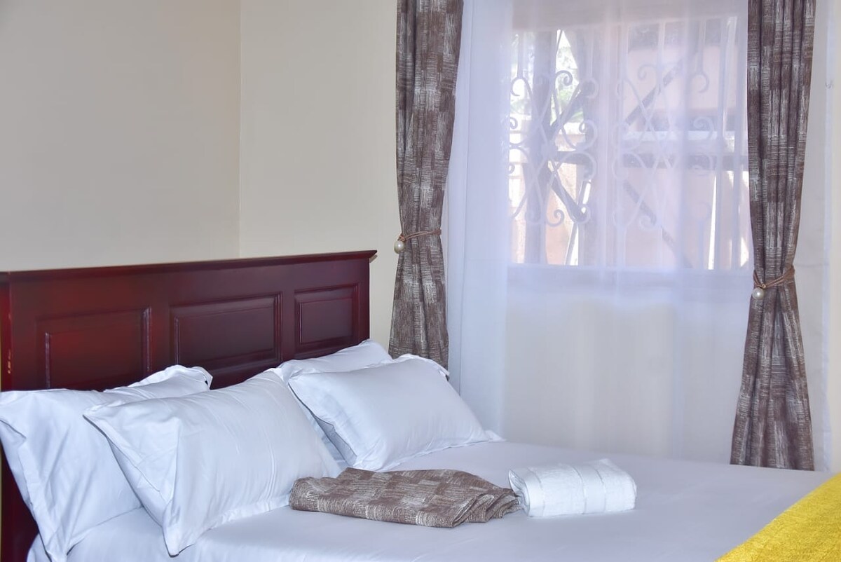 Este lugar elegante es ideal para viajes en grupo o si eres un ejecutivo que no está dispuesto a comprometer la calidad. Se trata de un apartamento de lujo a 10 minutos del aeropuerto, a un tranquilo paseo de la ciudad de Entebbe y a 5 minutos en coche del centro comercial Victoria. Justo enfrente del hotel Airport View, por lo que la seguridad es estrecha, con acceso a vistas al lago, ya que está en el último piso.