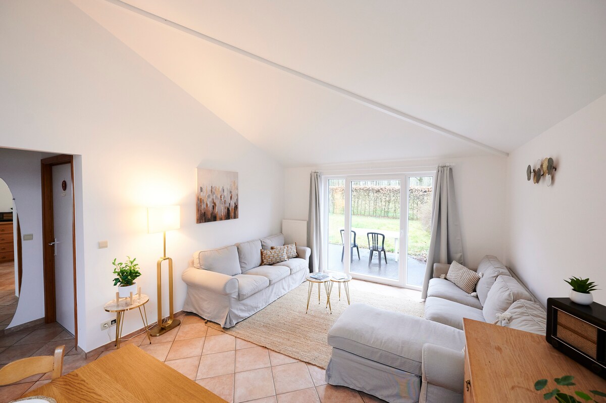 Encantadora casa a las puertas de las Ardenas se compone de un magnífico espacio de vida luminoso con cocina equipada. El alojamiento consta de 2 habitaciones amigables: Una espaciosa habitación principal con un ambiente relajante ofrece una vista hacia la madera. La segunda habitación está compuesta por litera, un pequeño escritorio y un lavabo. Terraza privada sin vecinos. Barbacoa disponible, buenas caminatas. Las sábanas de cama son adicionales: paquete de 30 € No se proporcionan toallas de baño.