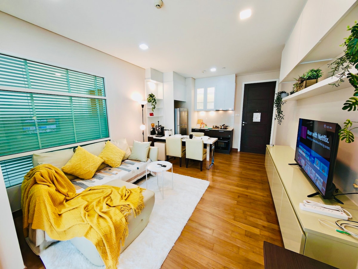 ¡Disfruta de una estancia relajante en tu moderno escondite en la ciudad! ✅ Llegada autónoma ✅ Colchón de alta gama ✅ Habitaciones individuales de aire acondicionado Camas tamaño✅ queen Wifi de✅ 500 mbps y escritorios de trabajo ✅ Sala de estar y comedor ✅ Cafetera ✅ Cocina completa + lavadora ✅ Plancha y tabla de planchar. Cerca (a pie): 🛒 7-Eleven – 5 minutos (¡en cada esquina!) 🚆 BTS Nana – 2 minutos 🌳 Benjasiri – 10 minutos 👜 Terminal21 Asoke (Solo los huéspedes que reserven una estancia de 30 días o más pueden acceder a la piscina en el piso 38)