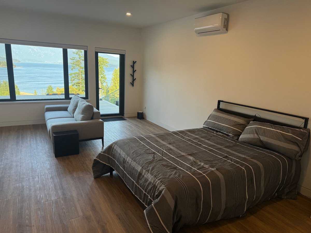 Suite privada dentro de una casa de 3 plantas ubicada a 30 minutos a pie (algunos pueden encontrarlo difícil) de la terminal de ferry de Langdale. En la encantadora ciudad de Gibsons, está a solo 40 minutos en ferry de West Vancouver. Junto con fantásticas vistas, ofrece muchas características excelentes, como jacuzzi para tu uso privado disponible del 1 de octubre al 30 de junio solamente. También contamos con cargador de automóviles eléctricos disponible en el lugar. ¡Importante! Lee la sección "Otros aspectos a tener en cuenta" y las reglas adicionales.