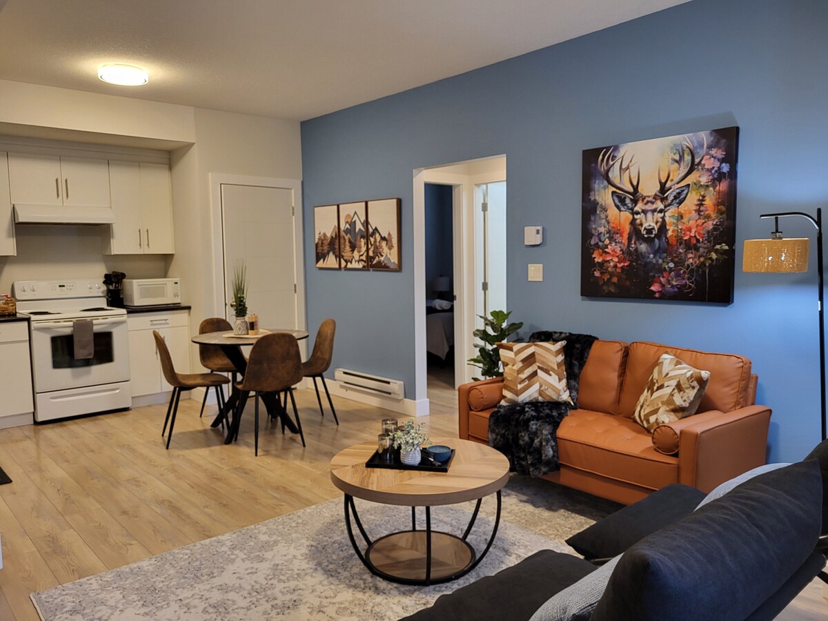 Nuestra suite es un impresionante refugio de un dormitorio recién construido, con un techo de 9' y un generoso espacio de 810 pies cuadrados. Cuenta con un televisor inteligente de 58 pulgadas y una cocina totalmente equipada, lo que garantiza un estilo de vida de alta calidad durante tus viajes. Disfruta del impresionante amanecer y atardecer desde tu balcón privado, con una magnífica vista al mar y las montañas a través del estrecho de Georgia. Convenientemente ubicada, nuestra suite es una base ideal para descubrir el encanto de la isla de Vancouver.