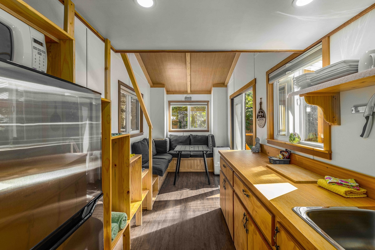 •Reserva tu estadía de verano/otoño en el lago. Trae un libro y haz fuego. Este lugar ofrece un ambiente diferente para cada temporada •Perfecto para los entusiastas del aire libre. -Cama queen súper acogedora • A1 minuto a pie del lago que tiene 2 playas. •Ciclismo de montaña, senderismo y actividades acuáticas de clase mundial en el lago •Nuevo diseño de alojamientos sostenibles • A10 minutos de la terminal de ferris de Columbia Británica y del centro de la ciudad. • Patio exterior con tumbonas, barbacoa y fogata • Alquiler de tablas y barcos disponible por un cargo adicional desde el centro vacacional (de junio a septiembre).