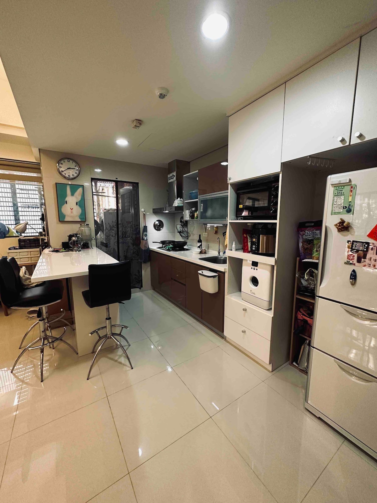 Espacio supergrande/1174 pies cuadrados Todo el lugar recientemente renovado Luminoso - ventanas en todas las habitaciones Piso alto, 2 ascensores Ideal para familias/viajeros de negocios. A 1 minuto a pie de la estación de MRT de Houshanpi. A 15 minutos a pie del famoso mercado nocturno de Raohe. MRT conecta con la línea del aeropuerto, cerca del icónico Taipei 101, ubicación conveniente, tiendas de conveniencia las 24 horas, supermercados, farmacias, bancos, desayunos taiwaneses y occidentales, puestos de comida taiwanesa, restaurantes, panaderías, cafeterías, etc.