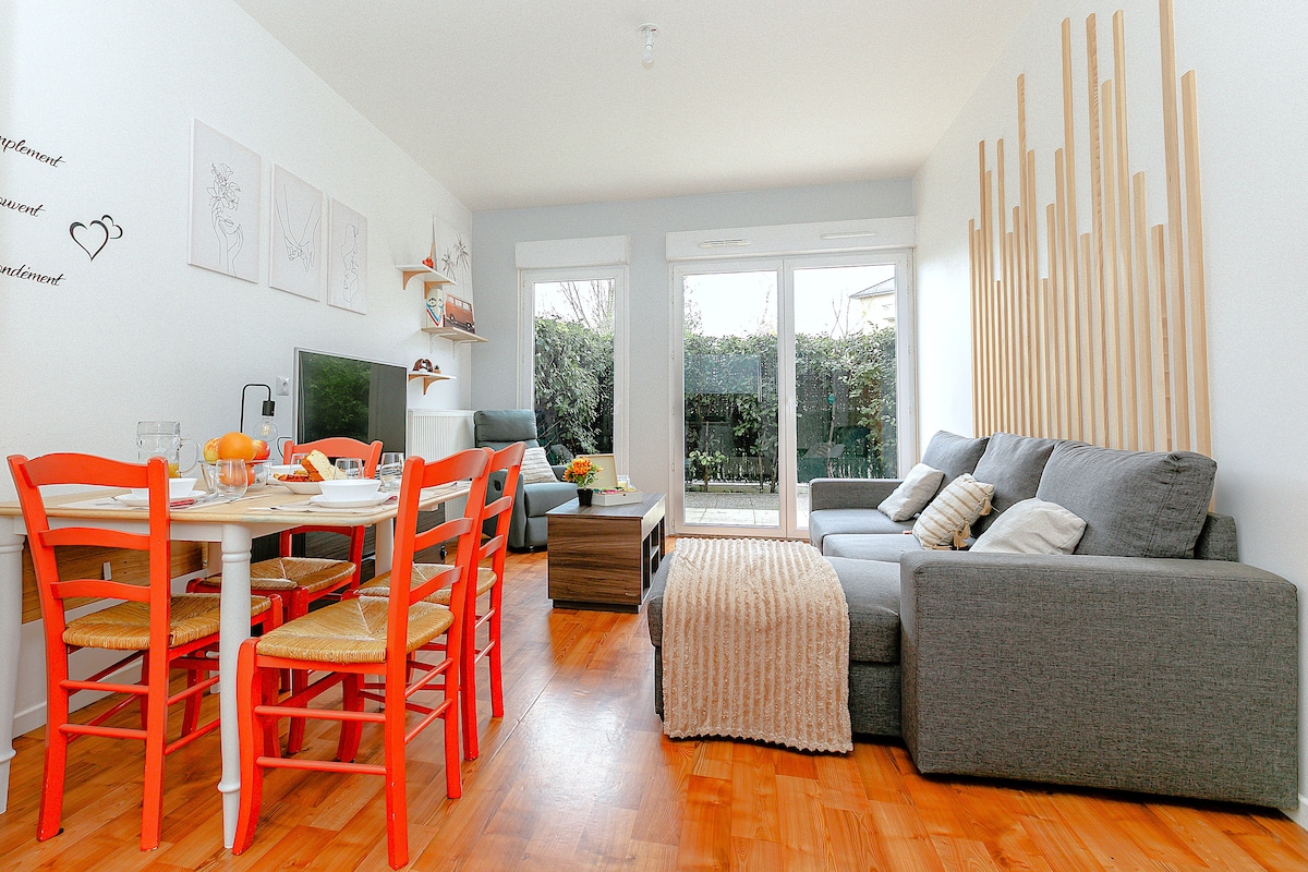 Relájese en este alojamiento tranquilo y elegante. 25 minutos París EST, 20 minutos DISNEY, a 10 minutos a pie de la Catedral de St Étienne. Todos los servicios cerca Venga a alojarse en este bonito y acogedor dúplex, con su espacio exterior. Cocina equipada, dormitorio de arriba con cuarto de baño y aseo. Ropa de cama y toallas Gel de ducha Bandeja de bienvenida con hervidor de agua Cuna de viaje a petición Ventilador bajo petición Aparcamiento gratuito en la calle. Estacionamiento de pago cercano.