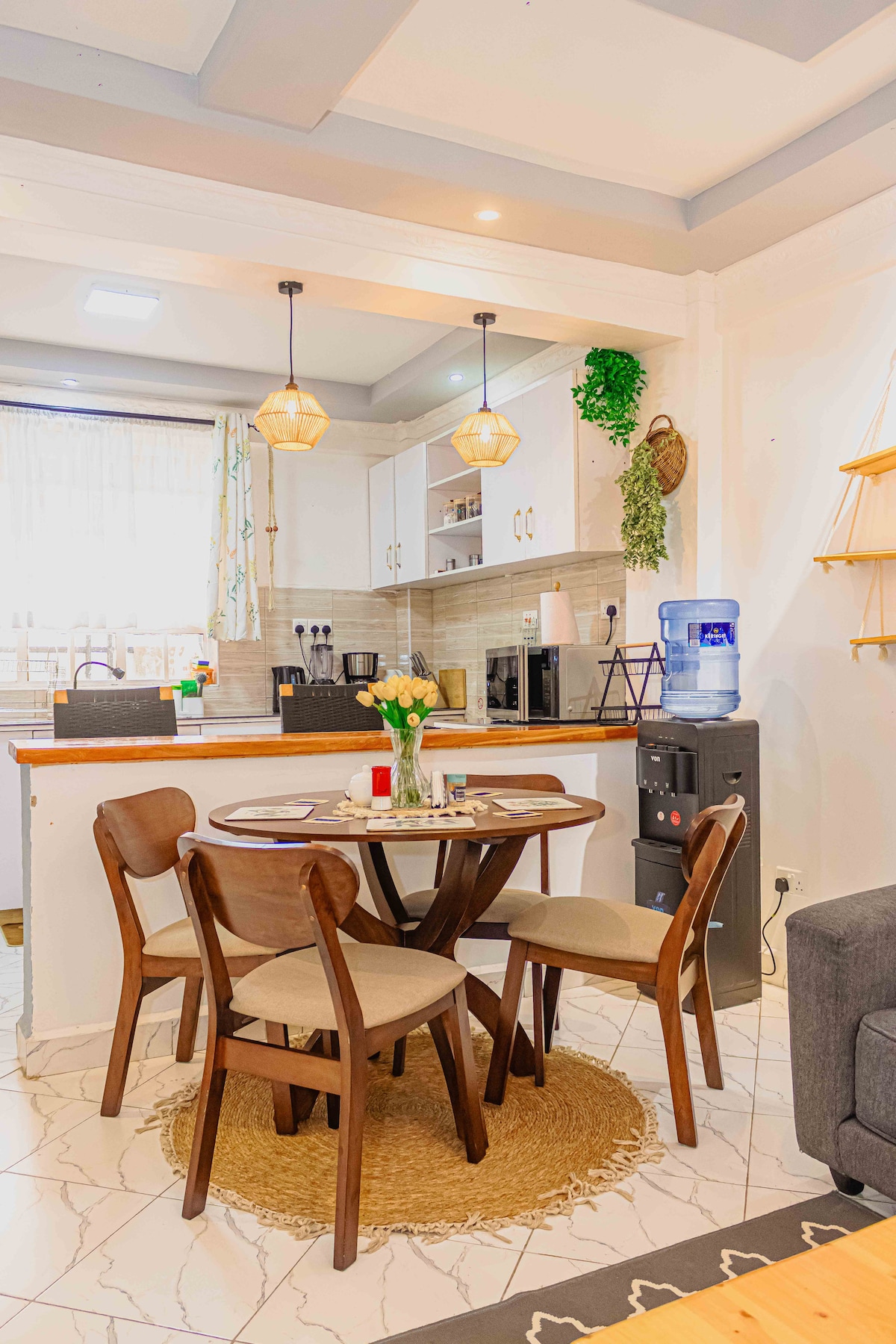 Nuestro cómodo apartamento de 1 dormitorio tiene todo lo que necesitas para tu viaje a Nanyuki. La unidad cuenta con una elegante cocina de planta abierta, un dormitorio generoso con un colchón de calidad de Dr. Mattress, internet de alta velocidad, televisión inteligente, amplio estacionamiento y una hermosa vista del monte Kenia en la azotea. Desde Cider Mall Nanyuki se tarda unos minutos en coche pasando por Fox Hill Apartments y luego Livia Lane a tu derecha hasta California Plaza. Una base ideal para explorar Nanyuki.