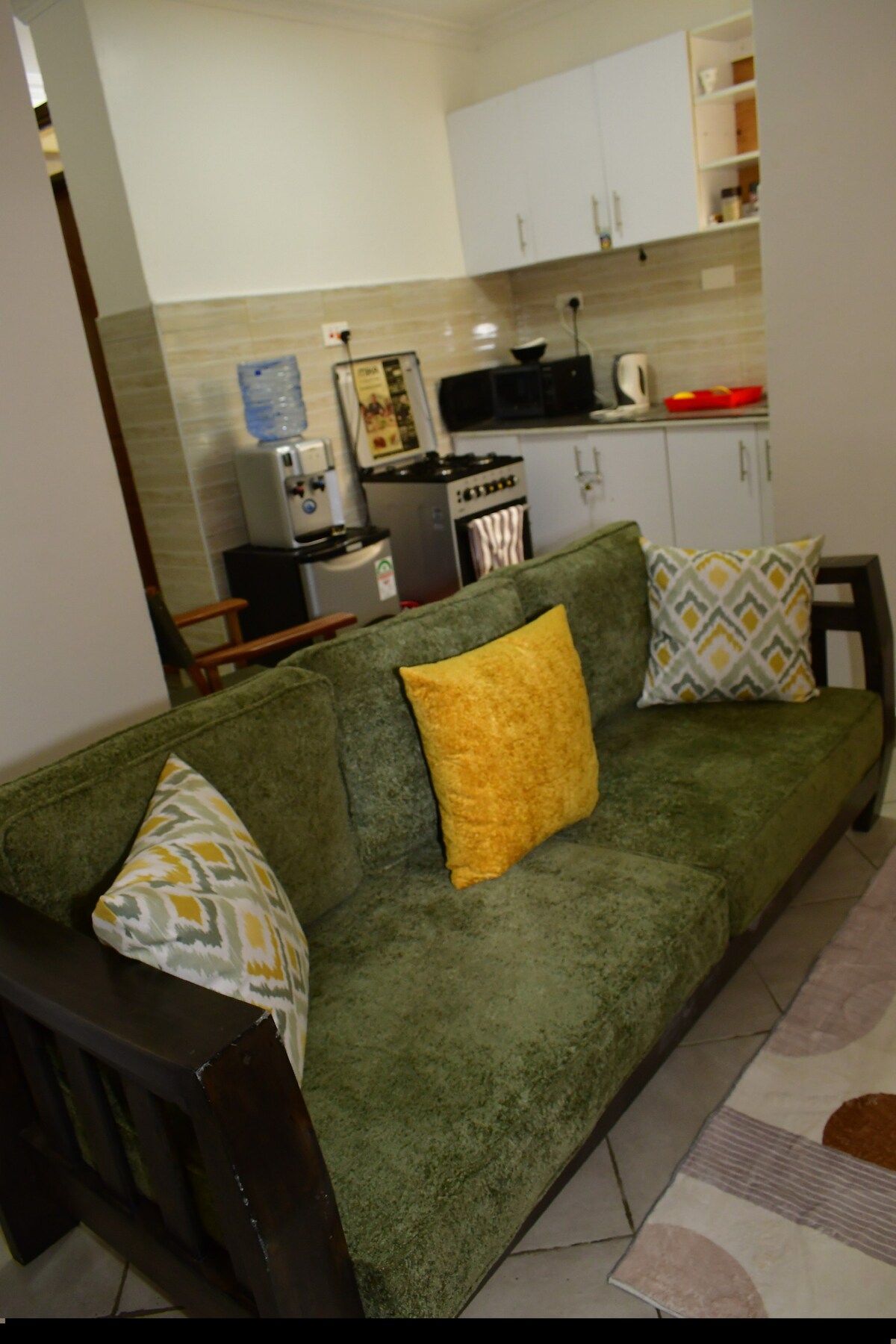 Brilliant sunset view that fills the mind with the most beautiful dreams. The apartment is a few mins from the mall. It's family friendly with a nice play ground,free parking,high speed WiFi among other amenities. The master bedroom is ensuite with a big bed(6*6). Both bathrooms have hot shower 🚿.Our kitchen is fully equipped with everything that that one would require(enough utensils,cooker,hot water jug, coffee,tea leaves,sugar). It's a home away from home.