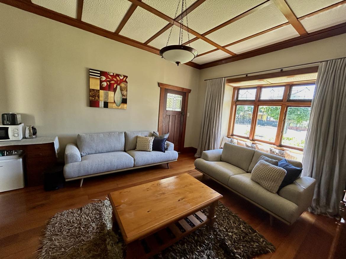 Esta casa construida en 1925 cuenta con 2 dormitorios grandes con camas tamaño queen, tu propia sala de estar, baño e inodoro separado. Tus anfitriones viven por separado en la parte trasera de la casa, tienes acceso independiente a tu espacio y tu privacidad está garantizada. Es un paseo fácil a la ciudad para ir de compras a 2 km de la parte inferior de la zona comercial principal. Carril bici frente a la playa cerca. Napier cuenta con vibrantes restaurantes, bares y locales de música. Para los amantes del vino, HB cuenta con más de 100 bodegas, ideales para degustaciones y recorridos.