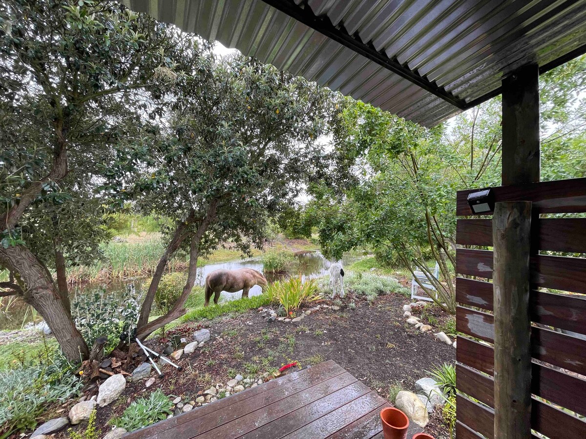 Tucked into the lush Hermitage Valley just outside Swellendam, the EcoTreehouse is a peaceful off-grid cabin designed for comfort, simplicity, and connection to nature. It’s perfect for couples, solo travellers, or small families wanting to unplug without compromising on comfort. Wake to mountain views, fall asleep to frog-song, and soak under the stars in your private wood-fired hot tub. Swim, stargaze, wander the trails, or meet the horses — this land invites you to slow down.