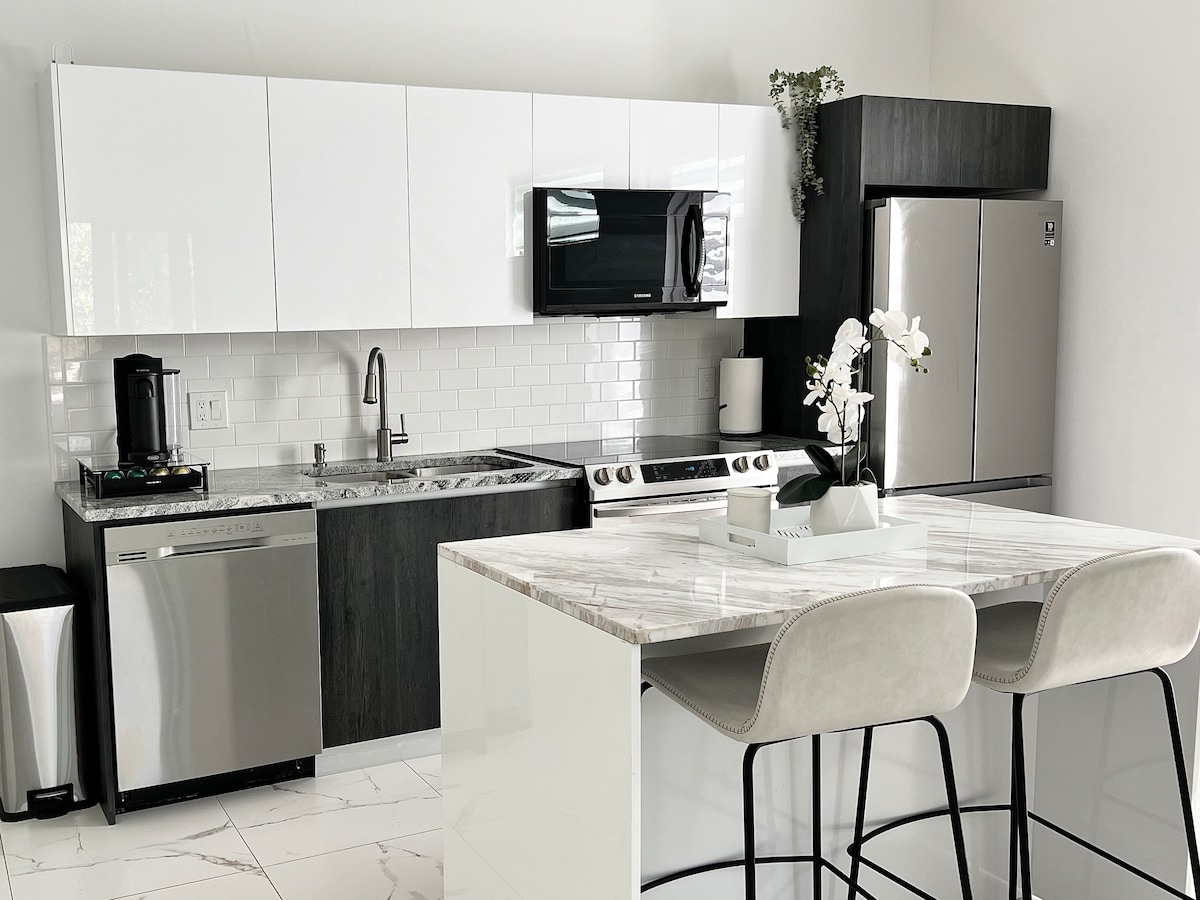 Te damos la bienvenida a nuestro lujoso dúplex de 2 dormitorios y 2 baños en la encantadora ciudad de Naples, Florida. Nuestro Airbnb es el alojamiento más cercano tanto al Jardín Botánico de Nápoles como al Parque Comunitario de East Naples, a solo 2 minutos a pie de cada uno. El diseño de interiores de alta gama se encuentra con un tema botánico moderno. Cada dormitorio ofrece camas tamaño king. Ofrecemos una selección de varios tés de cortesía. Para el café, nuestra máquina Nespresso, que incluye opciones de espresso doble, tostado oscuro, media cafeína y descafeinado.