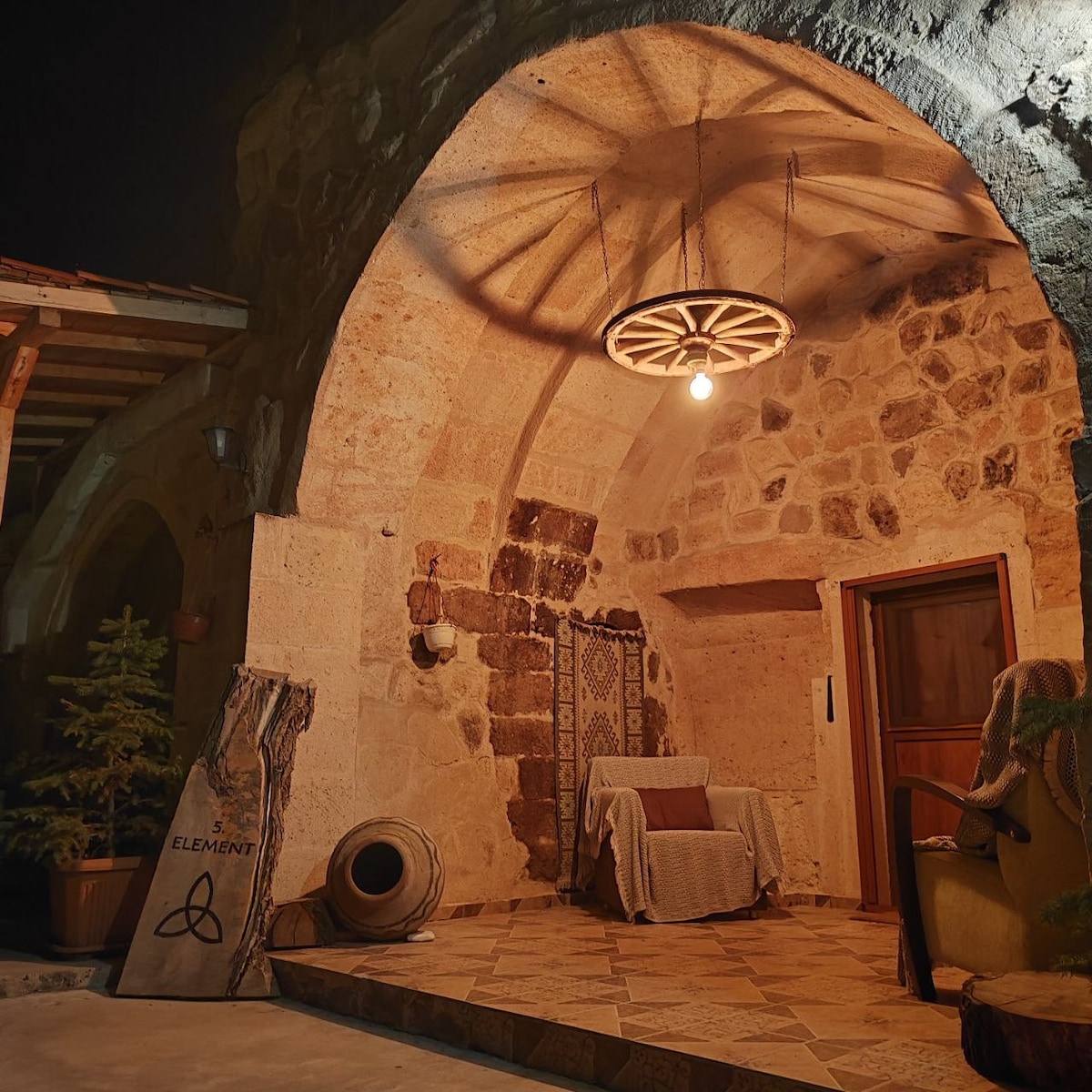 Acabamos de completar la restauración de nuestro hotel. Todas nuestras habitaciones e instalaciones han sido renovadas. Nuestras habitaciones han sido rediseñadas de acuerdo con la textura de la región y de una manera moderna. La mayoría de nuestras habitaciones son salas de cuevas y tenemos algunas habitaciones de piedra arqueada. Algunas de nuestras habitaciones tienen bañeras y vistas a la chimenea de hadas. Todas las mañanas, se sirve un rico desayuno en la terraza, acompañado por el magnífico amanecer. Los huéspedes pueden disfrutar de las vistas de los globos aerostáticos que se elevan sobre el valle.
