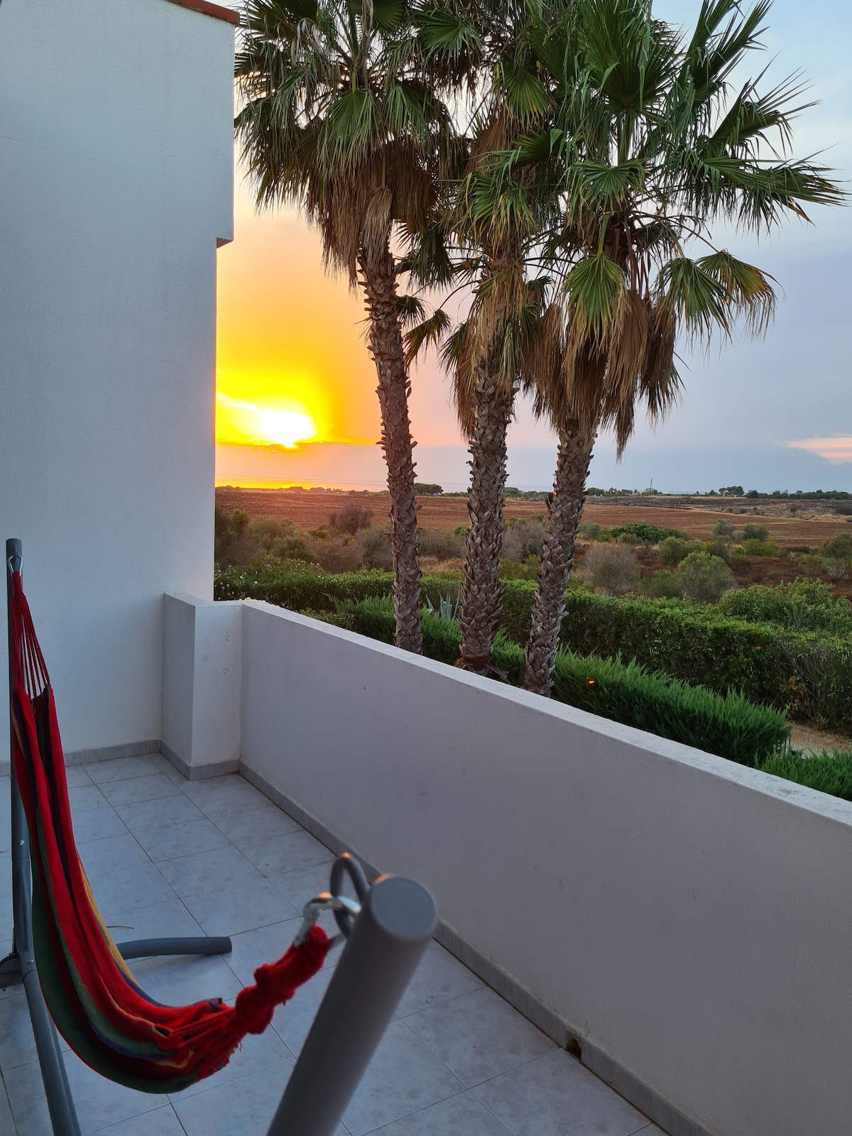 El apartamento, que forma parte de un complejo de seis casas adosadas, se distribuye en 2 niveles: sala de estar con salón, cocina, baño y terraza con vistas al mar superpanorámicas; zona de dormitorio (planta baja) con 3 dormitorios, hasta 5 personas, segundo baño con ducha de hidromasaje, segunda terraza/solarium. Vistas panorámicas y rodeado de la vegetación de un gran pinar.