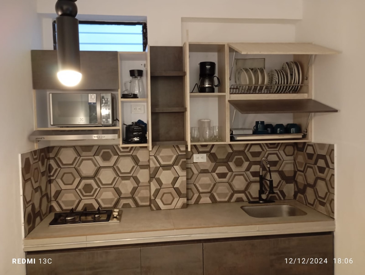 Cómodo estudio con cocineta para tres personas