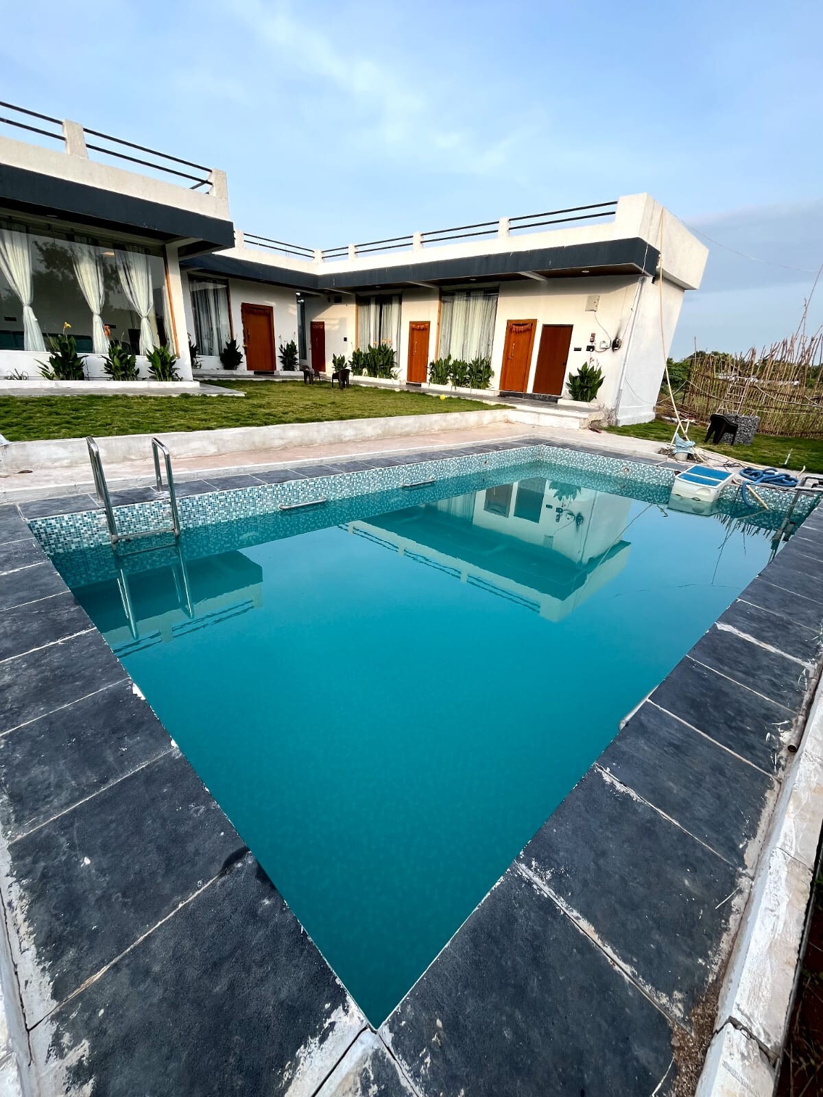 Welcome to a serene retreat designed for ultimate relaxation. Kick back and unwind in this calm, stylish space, furnished to provide a perfect escape from the everyday hustle. The property boasts a spacious, fully furnished 3 BHK (Bedroom, Hall, Kitchen), offering ample room for families or groups of friends. A highlight of your stay is the private swimming pool, measuring 24x12x4.5 feet. This substantial size is perfect for a refreshing swim, a leisurely dip, or some fun pool games.