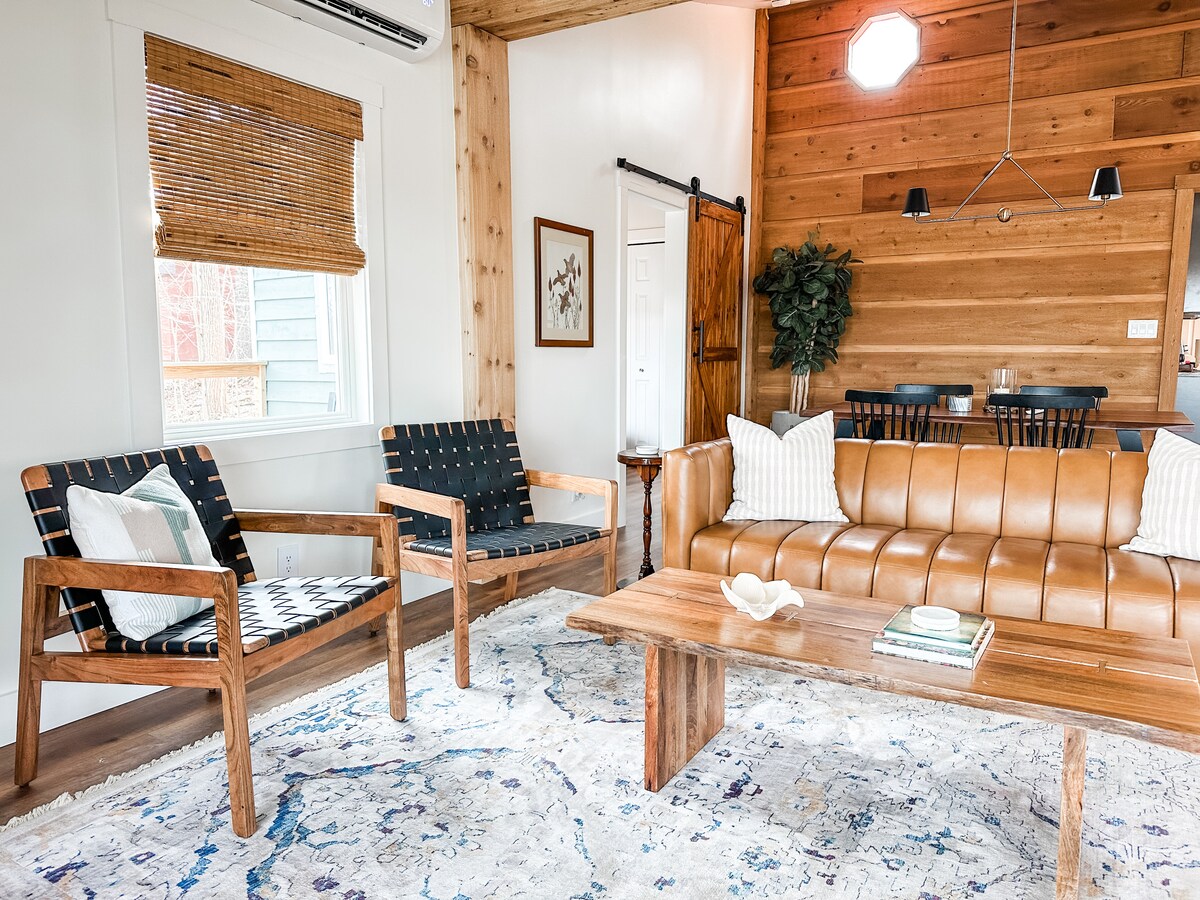 Esta moderna casa de un dormitorio de mediados de siglo se encuentra a solo 15 minutos de la histórica Nashville. Bellamente decorada y adyacente al Bosque Estatal Yellowwood. Esta casa tiene un plano de planta abierta. La gran cocina está abierta a una gran sala de estar. Puedes descansar cómodamente o sentarte en la terraza trasera y observar la vida silvestre. Recién remodelada en 2019, es un espectáculo para la vista. Estarás haciendo planes para tu próxima visita.
