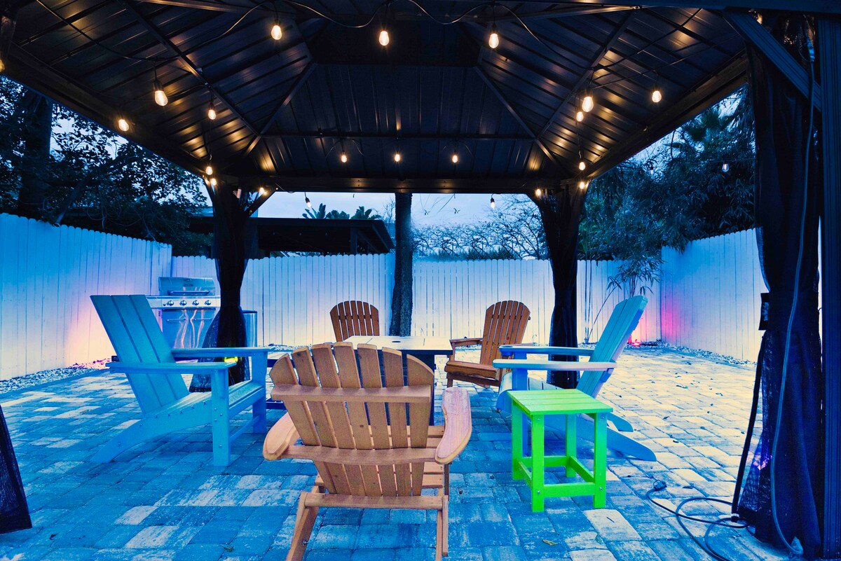 Oasis en la planta baja🌴 listo para trabajar en Jacksonville Beach 💛 Por qué te encantará quedarte aquí ✨ Diseñado para la productividad y la relajación: dos estaciones de trabajo con wifi rápido, además de una pérgola en el patio trasero para un verdadero equilibrio entre el trabajo y la vida. A 🌊 pasos de la playa y de los lugares de interés locales: a pocas cuadras del océano, los mejores restaurantes, cervecerías, tiendas y el muelle de Jacksonville Beach. Aprobado para🐾 familias y mascotas: patio completamente vallado, lavadora, secadora, equipo de playa y un diseño perfecto para parejas, amigos o profesionales que viajan.