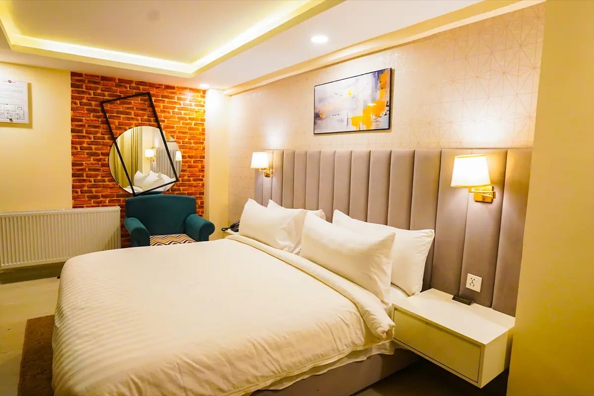 Modern heated rooms with balcony & panoramic Murree views—near Gloria Jeans & coffee planet,Mall Road Family-friendly mountain stay: private parking, free Wi-Fi & breakfast included Luxury hilltop rooms in Murree—balcony views, cozy heating & fast Wi-Fi