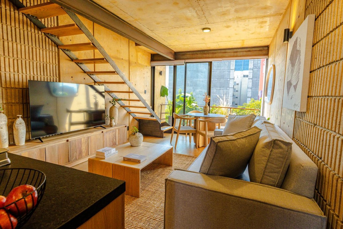 Este moderno departamento en Roma Norte es ideal para nómadas digitales: cuenta con Wi-Fi ultrarrápido, espacios de trabajo cómodos y se ubica a pasos de los cafés, restaurantes y vida nocturna más trendy de Condesa. Disfruta de amenidades de primer nivel: un centro de negocios, un gimnasio completo, una sala de juegos y un rooftop con vistas espectaculares. Mantente productivo, inspirado y vive CDMX como un local.