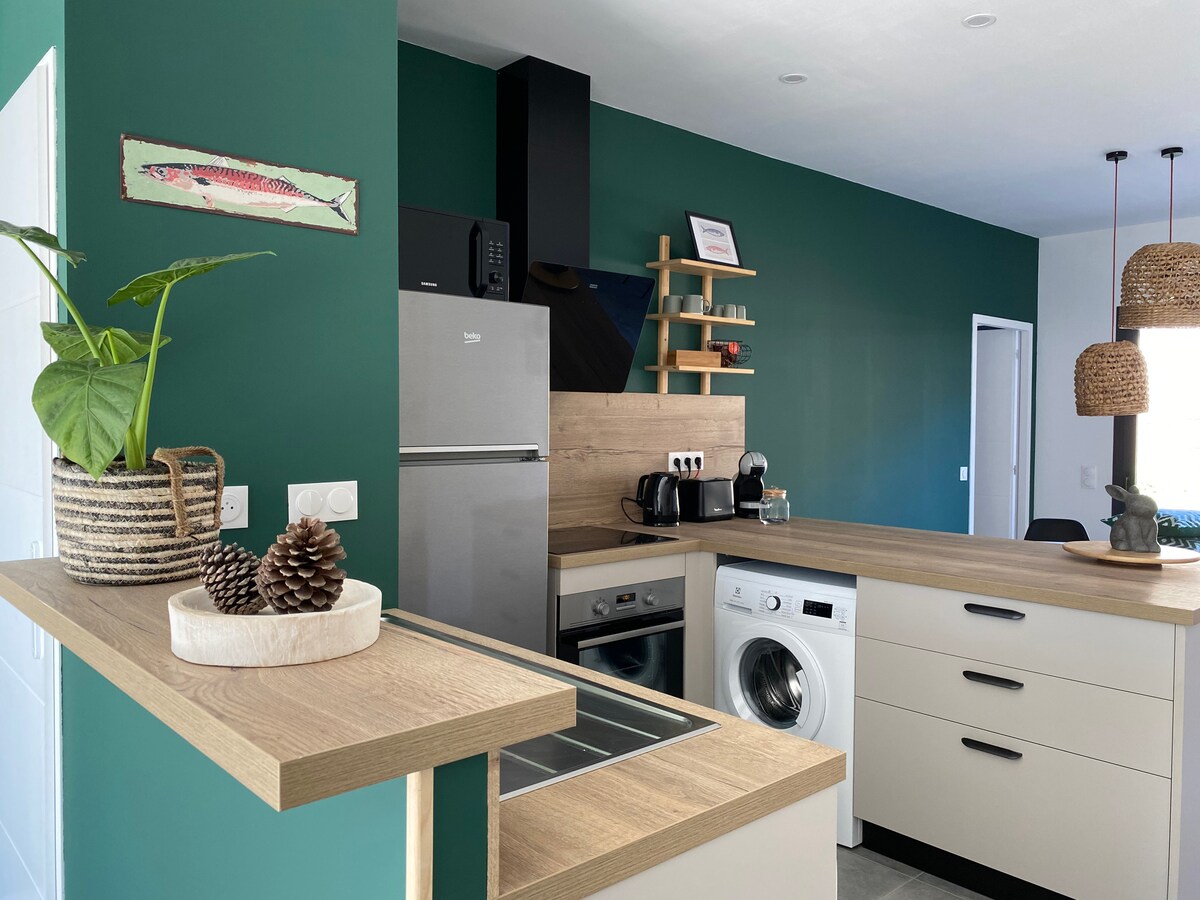 Relájese en este alojamiento tranquilo y elegante junto al lago. Decorada con buen gusto y equipada con todo lo necesario para cocinar, disfrutar y divertirse, esta casa es ideal para un fin de semana en pareja o unas vacaciones en familia, cerca del mar. A solo 10 minutos de la playa del pin sec, y cerca de todos los servicios, esta casa está idealmente situada. ¡La cocina está equipada como en casa! Y las 10 hectáreas de vegetación son ideales para dar agradables paseos. Ropa de cama y toallas incluidas.