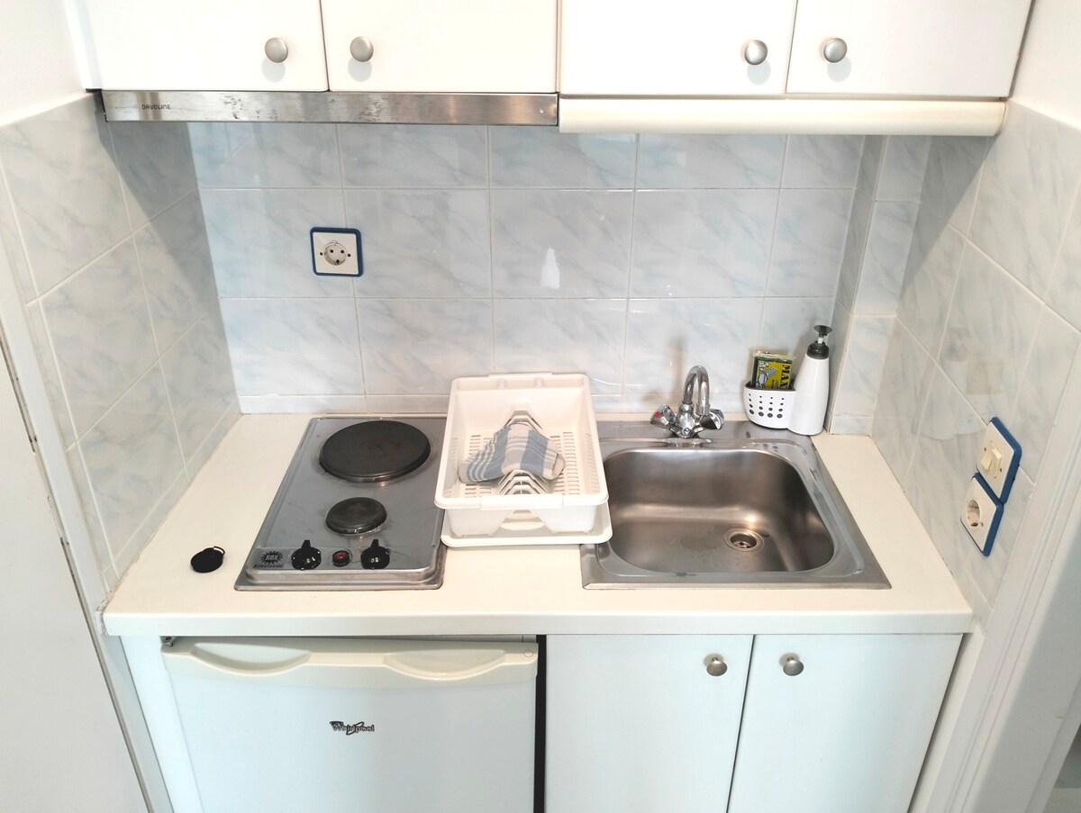 Estamos encantados de ofrecerte un estudio de 21,02 metros cuadrados, lleno de luz natural, muy limpio, con características tradicionales cicládicas, cocina americana totalmente equipada y renovada, con nevera nueva, un aseo recientemente renovado con ducha a ras de suelo y muebles de madera clásicos, cualitativos y vintage. Todos los suelos dentro y fuera del estudio están hechos de mármol de Naxos de alta calidad, conocido en todo el mundo. El mismo material del que se hicieron los monumentos y estatuas arqueológicas más bellos.