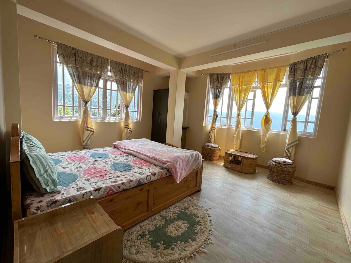 Esta será la estancia más valiosa y razonable en Darjeeling, ya que obtendrías un apartamento entero con cocina totalmente funcional y salas de estar y dormitorios amueblados. A solo 1,5 km de la ciudad principal (Chauk Bazaar), tenemos un barrio seguro y tranquilo adecuado para parejas, familias y viajeros solos. Se puede llegar a pie a atracciones como el zoológico, el museo HMI y el teleférico. Hay taxis compartidos disponibles para desplazarte. La vista desde el balcón privado es fascinante.