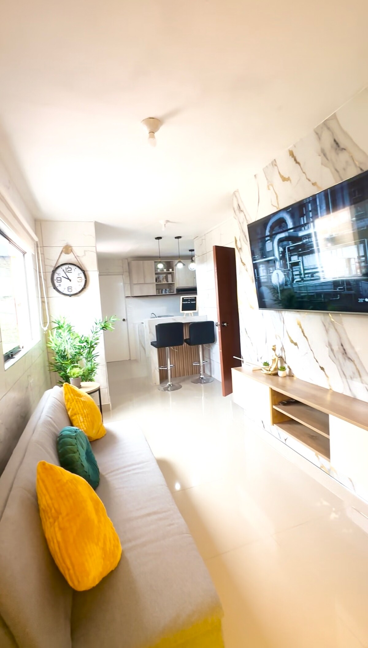 Disfruta de una placentera estadía en PARIÑITAS HOUSE, un espectacular mini departamento ubicado en el centro de Talara. Totalmente equipado con una cocina completa integrada y un dormitorio con cama de 2 plazas. Un Baño completo con agua caliente las 24 horas y una sala con decoración moderna, con WIFI y SMART TV (Cable y Netflix) Ubicado estratégicamente a 2 cuadras a pie del Centro Cívico y de muchos establecimientos comerciales, restaurantes, bodegas y a solo 15 minutos del Aeropuerto.