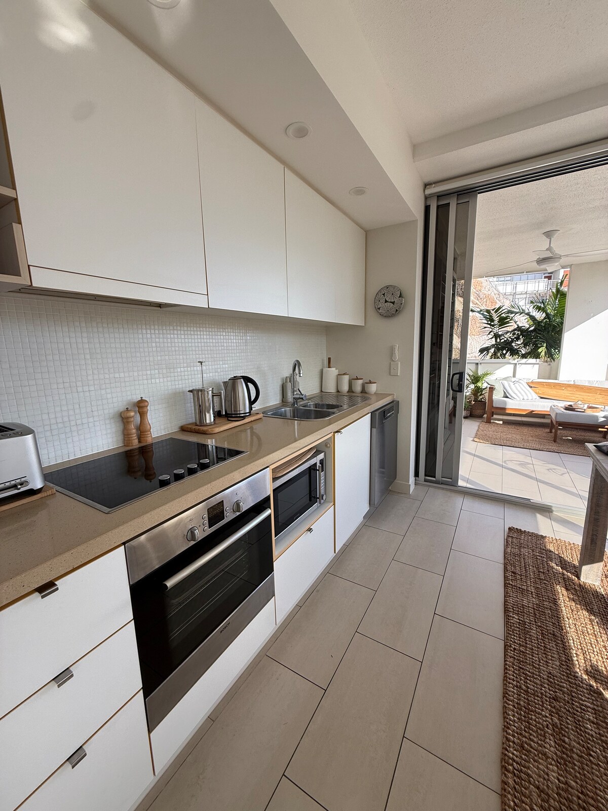 Unidad absoluta frente al mar a pocos minutos a pie del ferry+autobús. Planta baja, aire acondicionado completo de 2 dormitorios (1xKing +2 King Singles), 2,5 baños. Vistas ininterrumpidas al mar desde las áreas de estar y los dormitorios. Patio con una mesa de 6 asientos y puerta a la piscina infinita y césped frente al mar frecuentado por ualabíes de roca. La habitación principal tiene su propio patio. Lavandería separada con lavadora y secadora de ropa. Starlink WiFi. Televisión inteligente en el salón y el dormitorio principal. Hay KS inflables adicionales con ropa de cama disponibles previa solicitud.