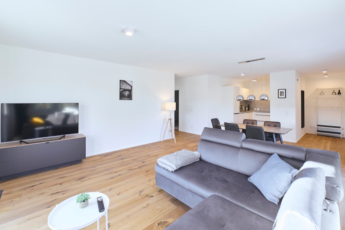 Apartamento de nueva construcción, sostenible y cómodo en 90 m². Está ubicado tranquilamente en el Allgäu y la luminosa sala de estar y comedor, la cocina bien equipada te invita a cocinar. Calefacción por suelo radiante, baño moderno, muebles de alta calidad y un espacioso sofá. Las estaciones de carga de bicicletas eléctricas y las ventanas de triple acristalamiento complementan la comodidad. El sistema fotovoltaico garantiza electricidad respetuosa con el medio ambiente. Acceso a rutas de ciclismo y senderismo, naturaleza y oportunidades recreativas. Este apartamento es un refugio con un factor de bienestar.