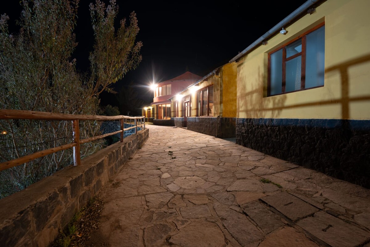Disfruta pasar unos días en este hermoso recinto, construido con piedra, barro y madera... para conectarse completamente en la naturaleza. vistas panoramicas desde la sala y terraza exterior, energia solar para la electricidad; Vista a las estrellas y vía láctea, caminatas, puesta del sol, amaneceres con cantos de las aves, área de fogata con instrumentos musicale y desayunar en la terraza. Los invitamos a disfrutar de la magia de Yanque - Valle del Colca.