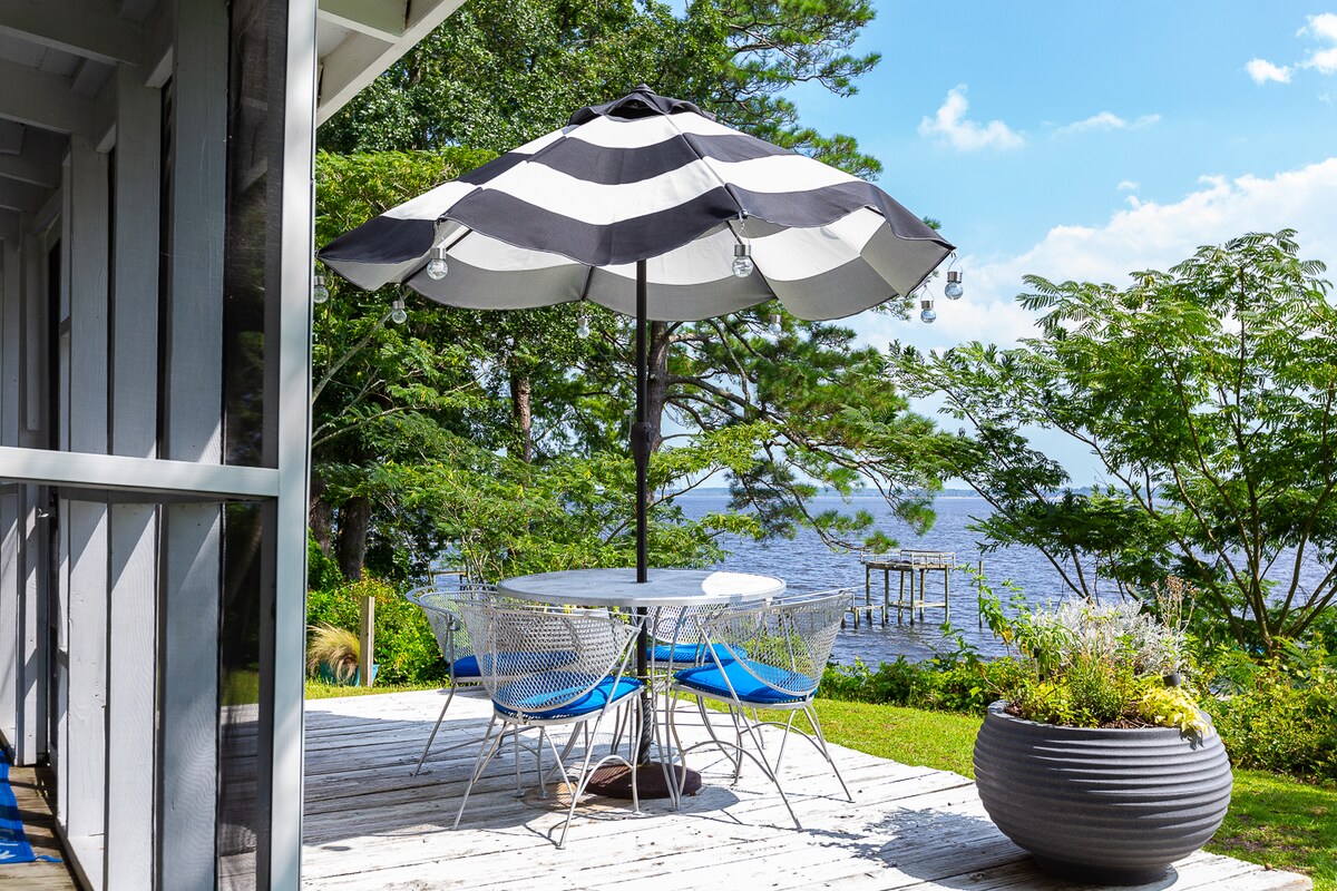Miles of breathtaking water views looking towards Swansboro from this riverfront cottage that has been newly renovated inside & out. A mile dirt road takes you off the beaten path & a private setting on the end of a dirt lane with only a few other fishing cottages. You will love the peace & quiet & refreshing breezes. Enjoy sunrises/sunsets from the pier! Access to kayaks, canoe & 2 paddleboards. Enjoy the ospreys dive bomb for fish, an occasional dolphin, & other birdlife.