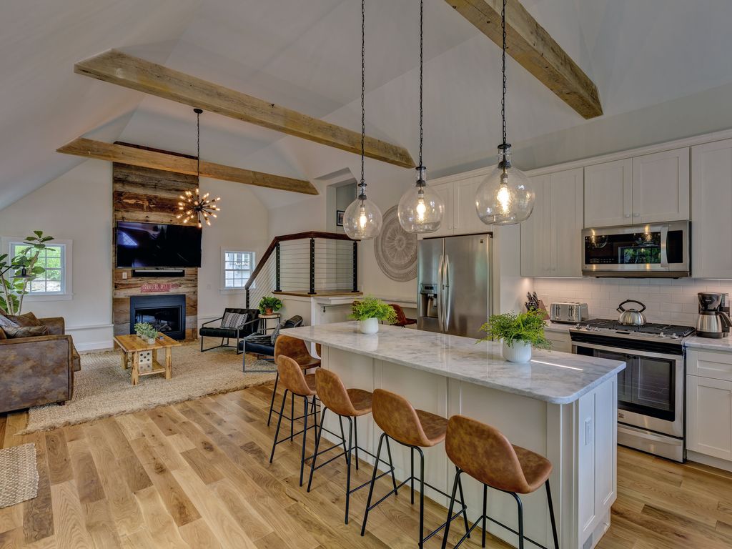 King Hill Cottage, un refugio de lujo meticulosamente restaurado ubicado en el lago Sunapee, cuenta con 3 dormitorios y dos baños con techos abovedados, que ofrecen un ambiente amplio y aireado. La moderna cocina atrae a los entusiastas culinarios con electrodomésticos de acero inoxidable, encimeras de granito y una cómoda isla con asientos para seis. Sal al patio trasero, donde los huéspedes pueden relajarse y entretenerse bajo las estrellas con una parrilla de barbacoa y un fogón de propano, completando la experiencia de escapada perfecta.