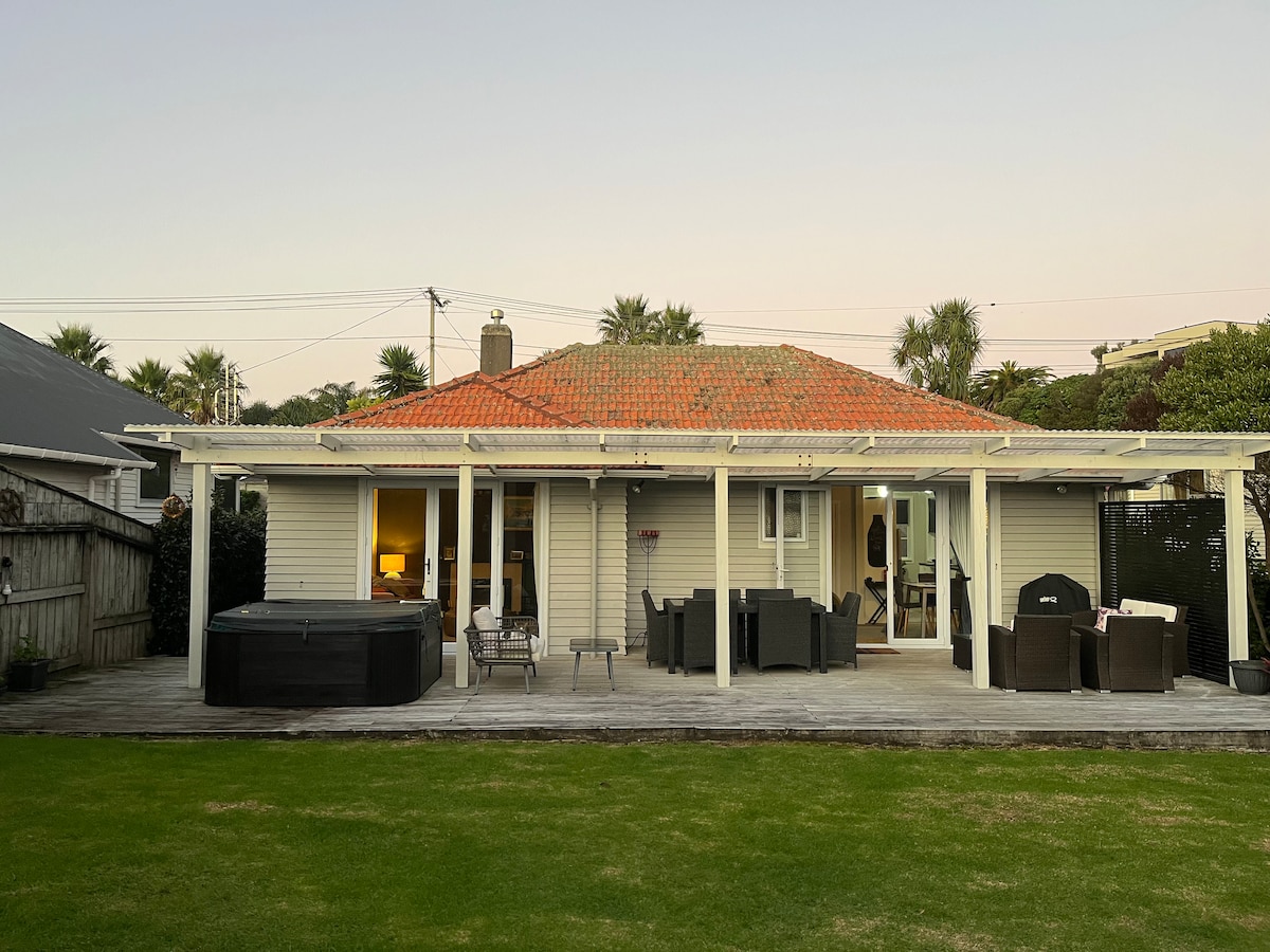 Relax and unwind at this peaceful retreat. The sun light floods into every room. The house is super private. A spacious Deck has different areas to relax with a BBQ. Big table. Relax in the spa and just enjoy. House is only a 10 minute walk from Fitzroy Beach, close to golf course and Lake Rotomanu. Nicely decorated house that is private - it’s like having your own sanctuary. There is an electric blanket on the King Bed and heaters in every room. The house is very warm. Has everything you need.