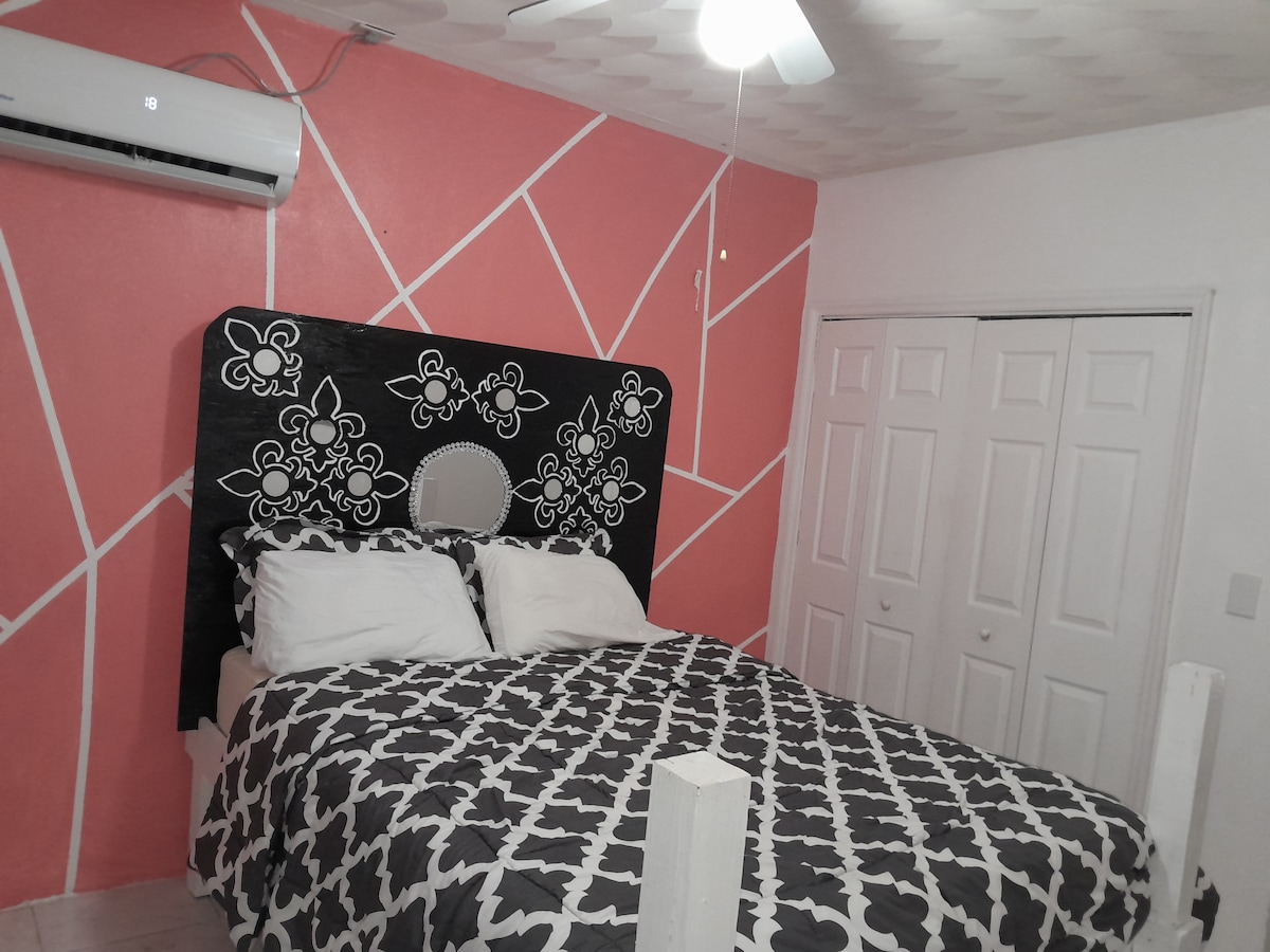 Nuestro hogar está a solo 10-15 minutos en autobús del centro de Nassau, las tiendas y las principales atracciones de Nassau. Este alojamiento se encuentra a solo 10-15 minutos a pie de playas de arena blanca. Es un apartamento estudio de 1 dormitorio y 1 baño recientemente renovado, limpio y espacioso con una gran cama queen size, aire acondicionado, WiFi y TV nuevos con una caja de androides. Nuestro espacio es bueno para parejas, viajeros individuales y viajeros de negocios. El apartamento está cerca del transporte público para que puedas acceder a la isla en autobús.