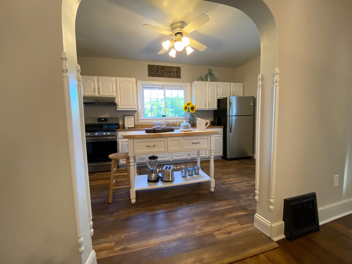 Escape to our charming countryside home, where rustic tranquility meets modern comfort. Enjoy the newly renovated space with three bedrooms, one bathroom, and picturesque views of the woods and farmland. Explore the beauty of the country or relax on the back deck or fire pit. Inside, the open living area and fully equipped kitchen await. Whether it's a peaceful retreat or family adventure, experience rural magic with all the comforts of home. Book now for unforgettable countryside memories.