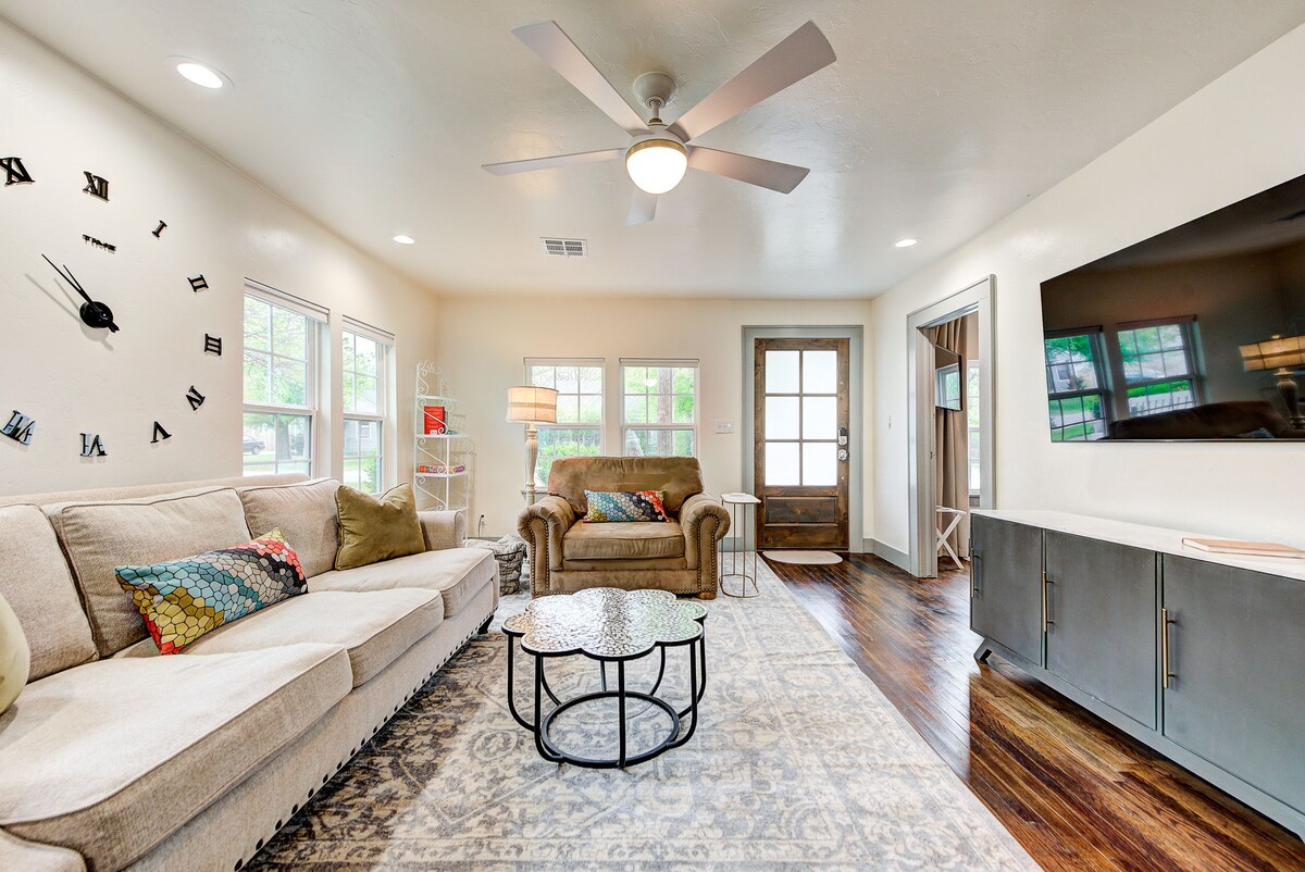 Diseñado para tener todos los extras de un buen hotel, pero con la sensación y el espacio de una casa. ¡Este es tu lugar para ser acogedor, relajarse y disfrutar! Ubicada en una esquina de un vecindario apto para familias, esta casa tiene cocina completa, dos patios y un patio trasero completamente cerrado. La fogata y los s'mores de cortesía también son tuyos, en este encantador y cómodo hogar.