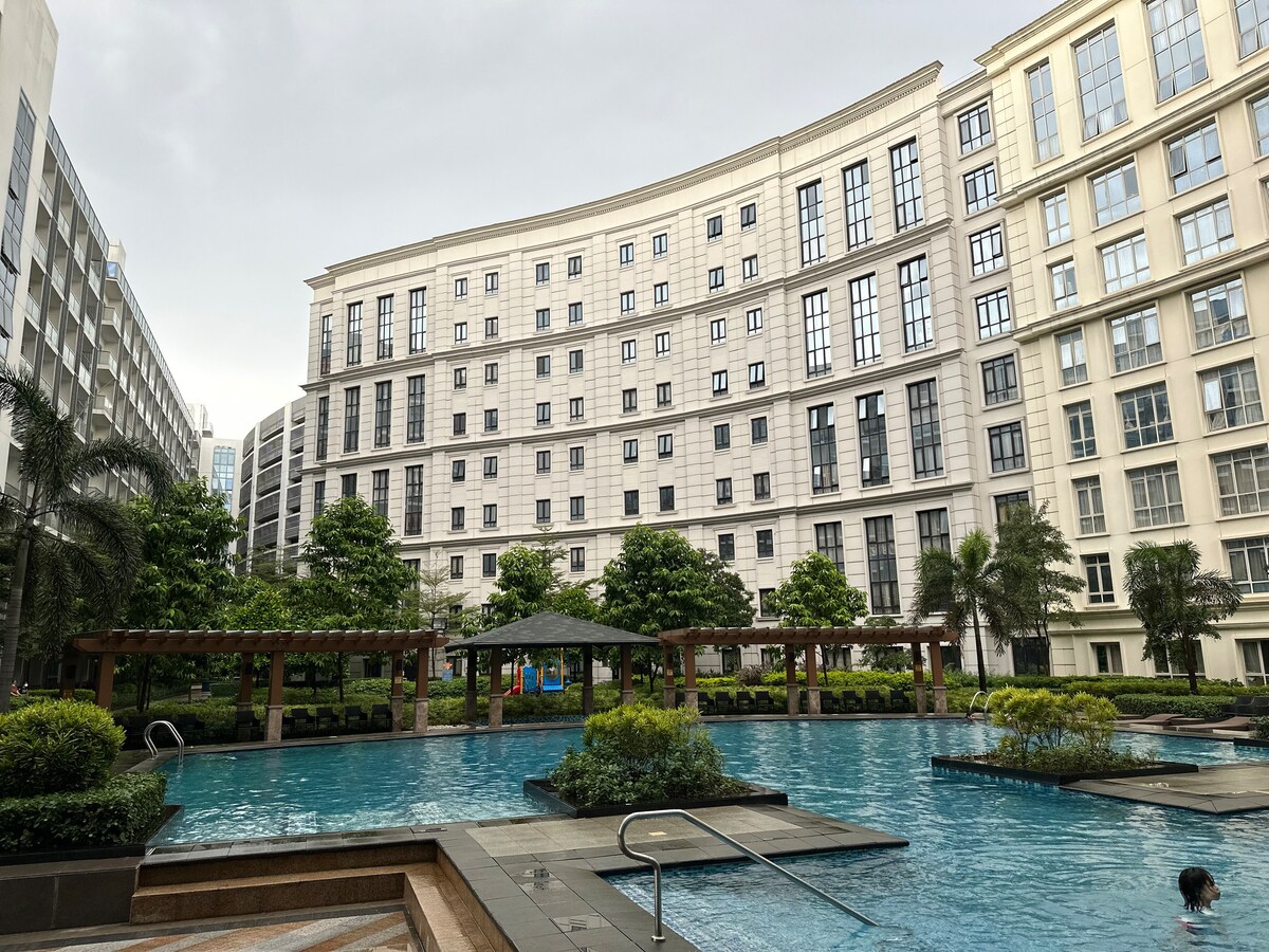 The whole group will enjoy easy access to everything from this centrally located place. Spacious condo that can accommodate up to 8 persons. Very accessible to Senior Citizens and kids. It has great amenities like swimming pools, jacuzzi and gym. Walking distance to Airport Terminal 3, Resorts World Casino and Mall, St. Therese Church, Metro Grocery, Banks, Laundry shop, Restaurants, Salons, Spa Massage, Dental Clinic, Hotels and a lot more. 15 minutes away from Mall of Asia and Terminal 1&2.