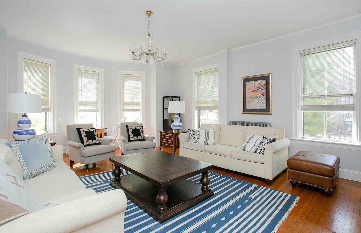 Apartamento Colonial Newport recientemente renovado ubicado en el corazón del centro de Newport y a solo unos pasos de los mejores restaurantes y tiendas de la ciudad. ¡Totalmente equipado con todo lo que necesitas! A solo 10 minutos en coche de Marble House, Cliff Walk y The Breakers Mansion. El apartamento cuenta con muebles cómodos y es perfecto para grandes familias. ¡Terraza en la azotea con vista parcial al mar, parrilla para barbacoa y muebles de exterior!