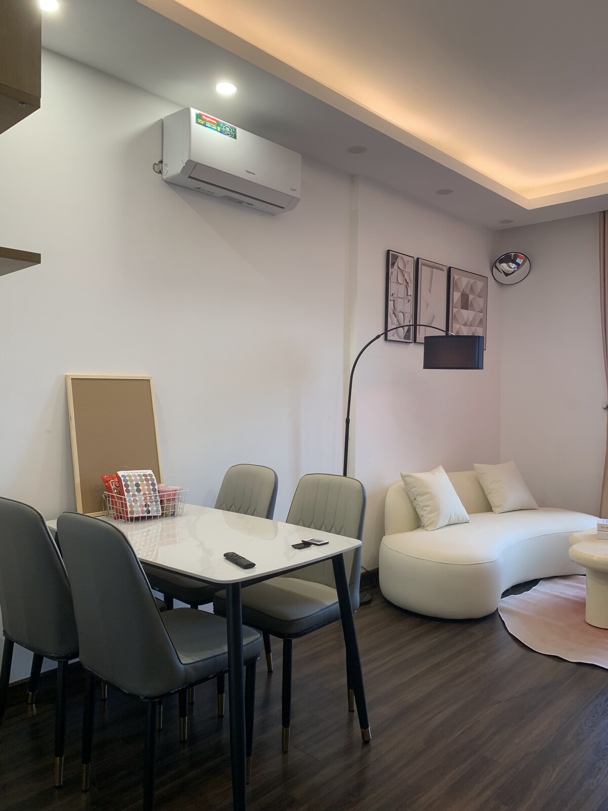 Departamento moderno de estilo orgánico con 2 dormitorios 2 limpieza nueva 100% totalmente amueblada que incluye: lavadora secadora, baño, wifi gratuito, cocina, mesa de comedor. - Frente al supermercado GO, disfruta de las compras. - Frente al restaurante Lac Hong (con cupón de descuento). - Cerca del salón de té de música Opus, famoso en Hai Phong. Tiempo estimado en taxi - A 10 minutos del aeropuerto Cat Bi. - A 10 minutos de la Ópera Hai Phong. - A 15 minutos de Vin Wonder. - A 10 minutos del mercado Luong Van Can, el paraíso de la comida.