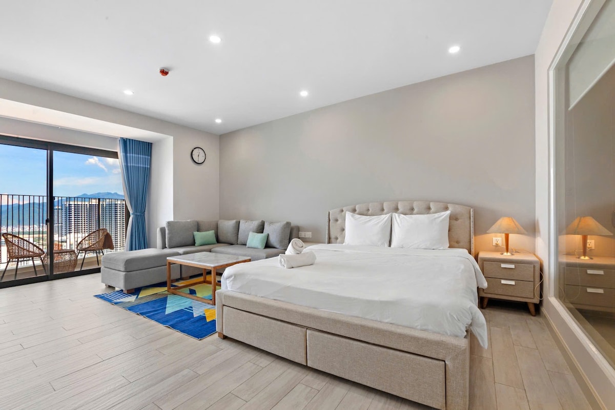 ## Ubicación privilegiada: - Ubicado en la carretera de playa Trần Phú, el bulevar costero más emblemático de Nha Trang. - Cruza la calle hasta la playa. - A 5 minutos a pie del mercado nocturno de Nha Trang, la torre Trầm Hương y los parques frente a la playa. - Junto al centro de Nha Trang (Haidilao, cine, bolos, Starbucks y más) y Lotte Mall / Lotte Mart. - A poca distancia de restaurantes, cafeterías, tiendas de conveniencia y spas locales. - Acceso gratuito a la piscina de la residencia. - Fácil acceso a taxis, autobuses y puntos de recogida de excursiones.