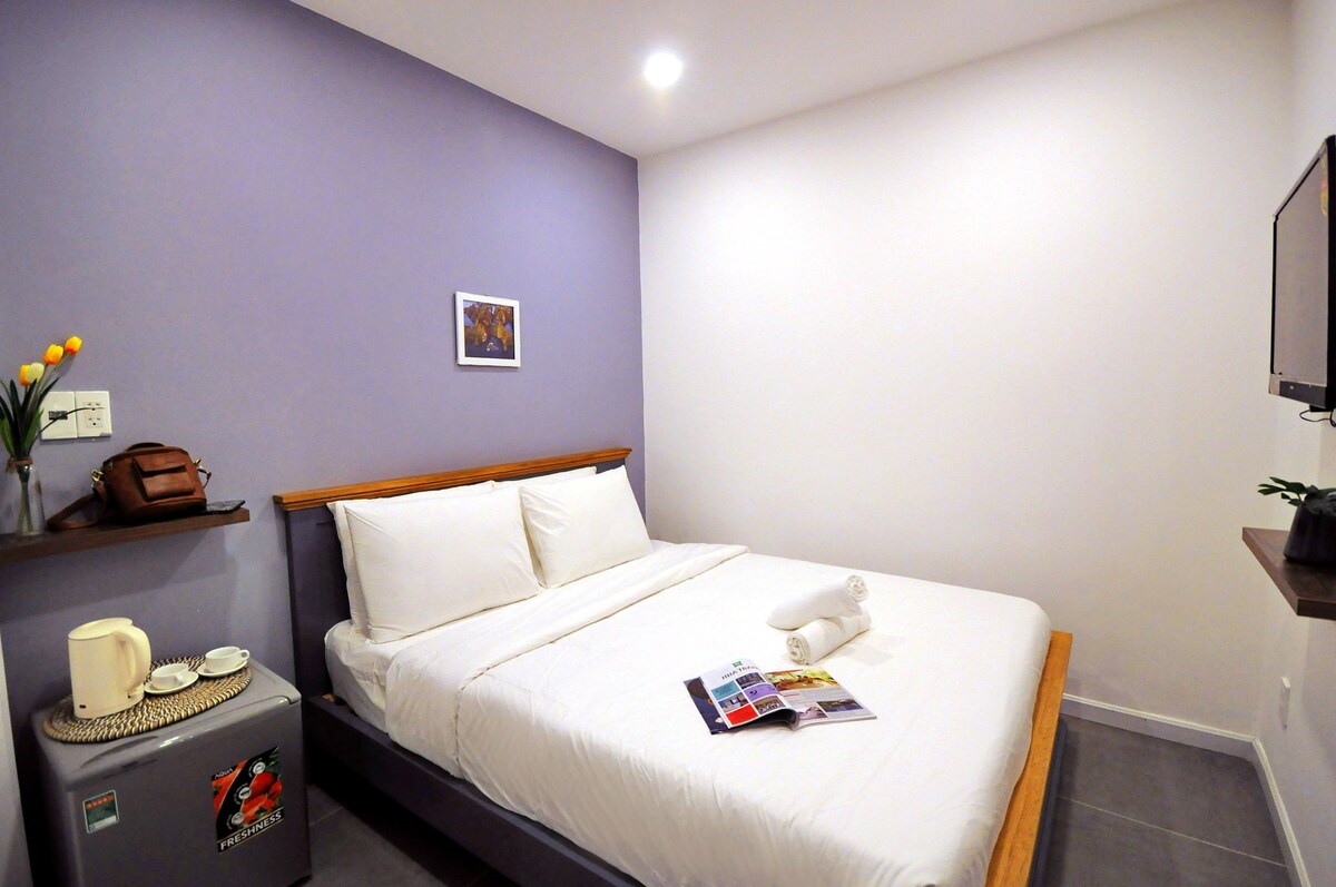 ¡DESCUENTO del 20% frente a nuestro hotel, la playa y el mar son increíbles! Tendrás un viaje memorable en Nha Trang. Con unas vistas impresionantes, esta habitación es cómoda para 2 personas. Nos aseguramos de que esté fresco y limpio. - 1 queen. La cama es muy cómoda. - Ventana y mucha luz natural - Baño privado y lleno de esenciales - Ascensor, aire acondicionado, nevera, hervidor de agua, wifi rápido, TV, mesa, silla, secador de pelo. - SERVICIO GRATUITO DE limpieza Y estacionamiento - El recepcionista trabaja las 24 horas, los 7 días de #Agregar: calle Pham Van Dong