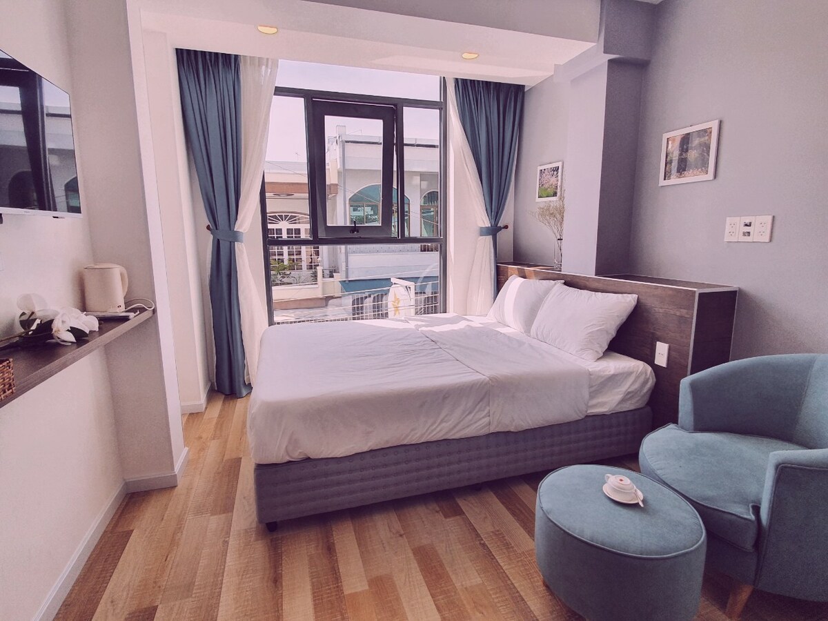 Deluxe City View with Balcony brings to you a great experience with a big comfortable bed and Balcony with city and sea view - Modern funiture - Modern TV with more than 200 chanels - Free wifi - Minibar with good drinks - Hot water - Wash & iron clothes service - Picking up Airport service - Motorbike and car for rent - Tourism service ticket