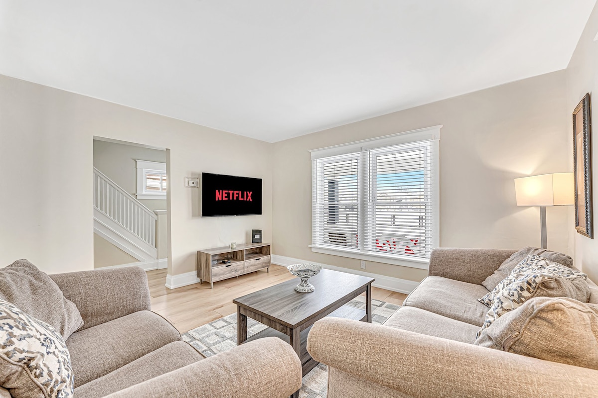 Ubicada en el corazón de la ciudad, nuestra excepcional casa de Airbnb ofrece la combinación perfecta de comodidad para familias, comodidad moderna y proximidad a la emoción del centro de Niagara. Este espacioso y acogedor refugio está diseñado para ser tu hogar lejos de casa, proporcionando un amplio espacio para relajarse, jugar y pasar tiempo en familia. ¡Es nuestro trabajo asegurarnos de que estés cómodo, ya que tu comodidad es nuestra comodidad! Nuestro espacio se encuentra a 2,8 km de las cataratas y a 2,6 km de Clifton Hill.