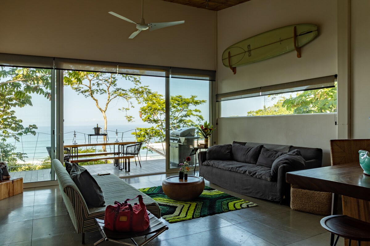 Hermosa casa de lujo llena de luz con vistas al mar en el corazón de Santa Teresa. Inmerso en los sonidos naturales de la selva tropical, pero a 1 minuto de restaurantes y autobuses 2 espacios de trabajo: excelente WIFI de alta velocidad ¡Alquiler vacacional muy privado y moderno, perfecto para familias con niños y amigos!